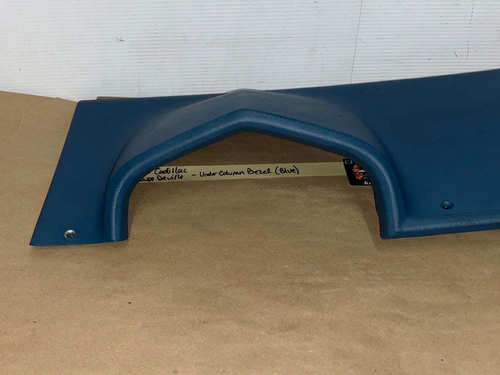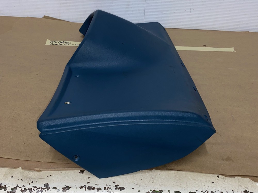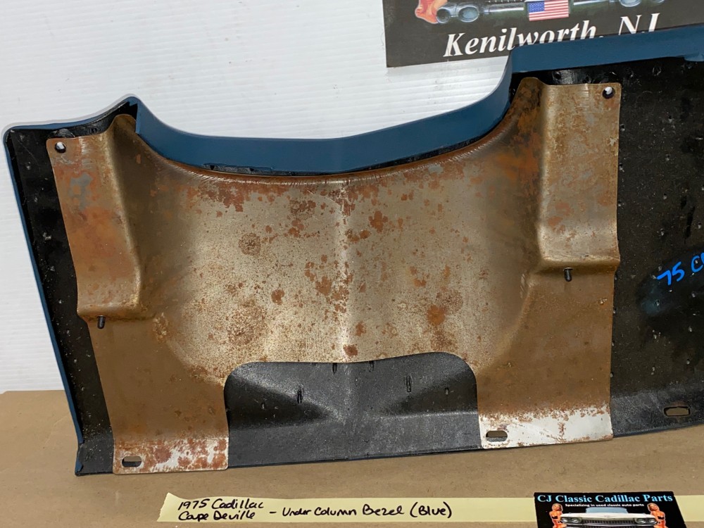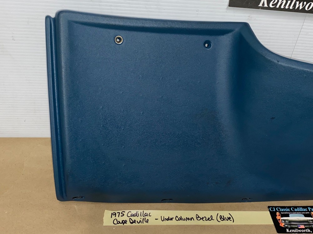 This OEM under column bezel trim is in very good to excellent condition. The vinyl is in very good condition with minimal blemishes. There are a couple of black scuff marks, but not readily seen when mounted. Overall very nice. All mounting holes/tabs are intact, no cracks. Please look at all pictures as they are part of the description. This was removed from a 1975 Cadillac Coupe Deville, but may fit other vehicles listed in compatibility chart; fitment based on Cadillac Master Parts List 6.760; please do your own research as we do not offer refunds if it does not fit your vehicle.