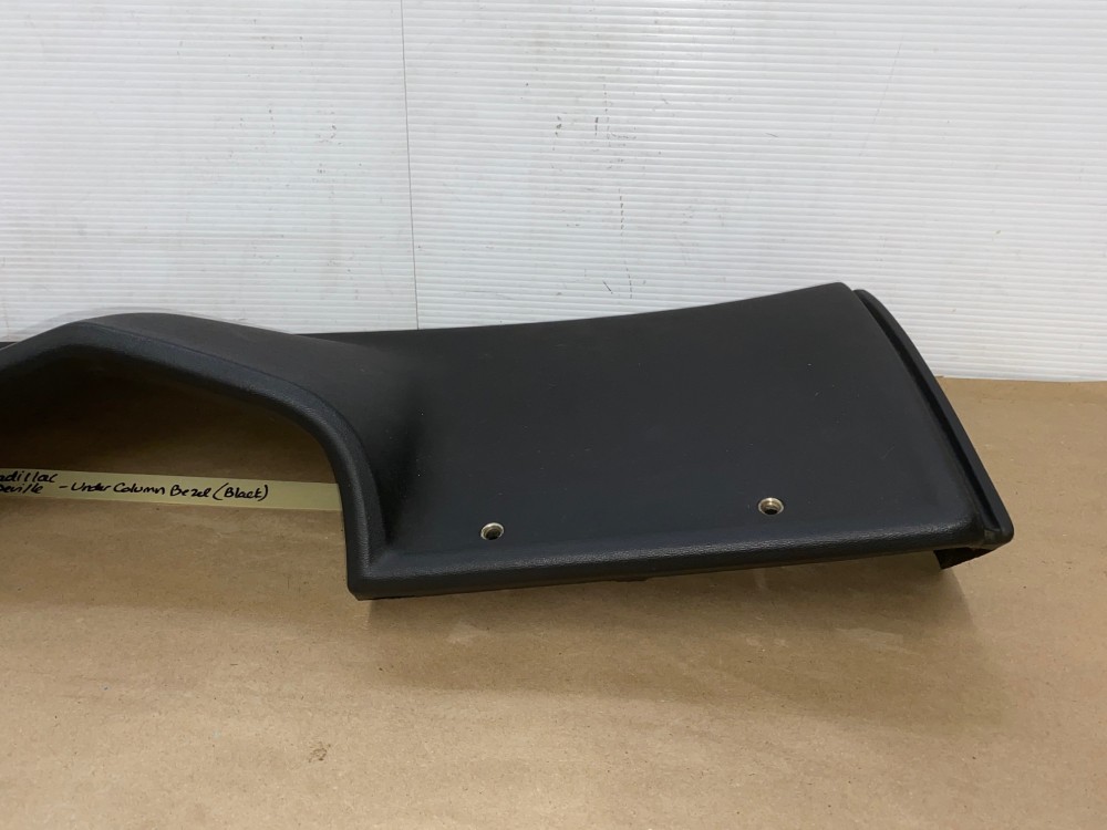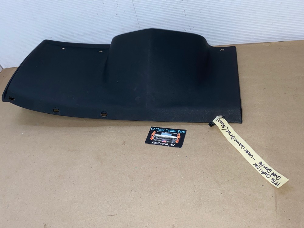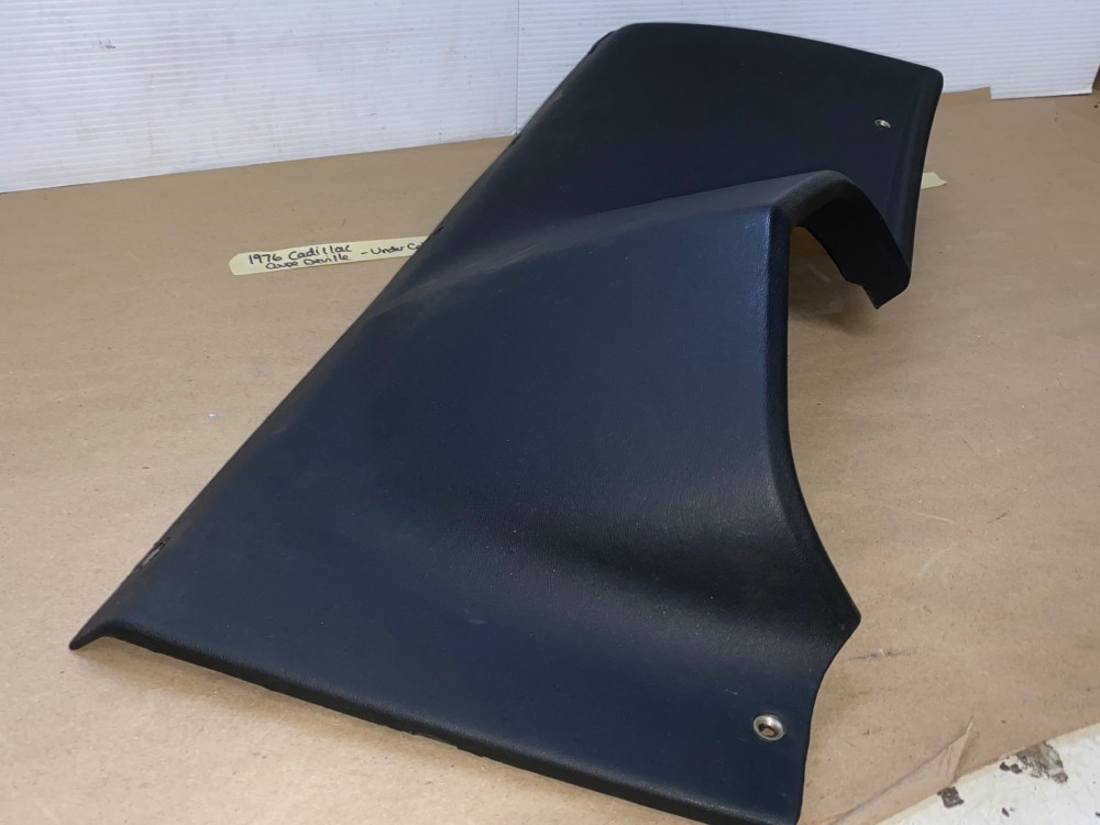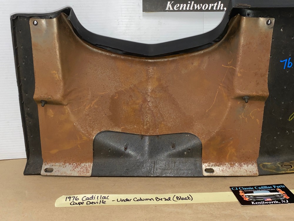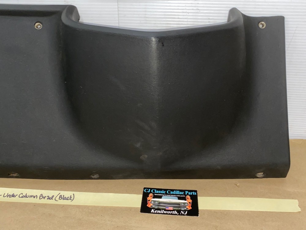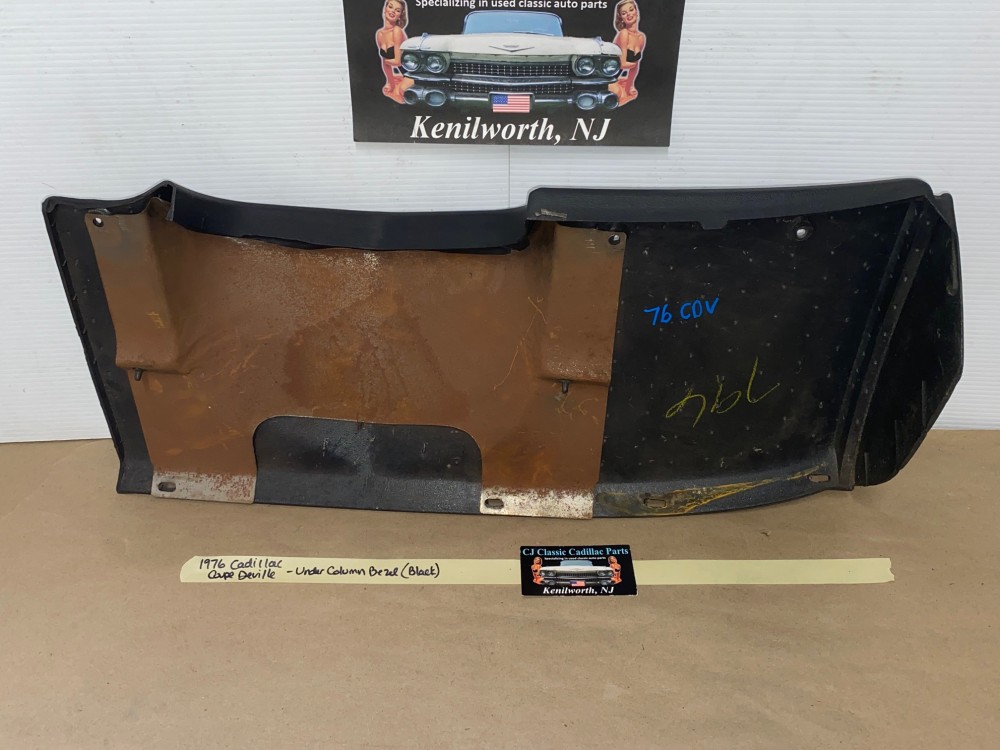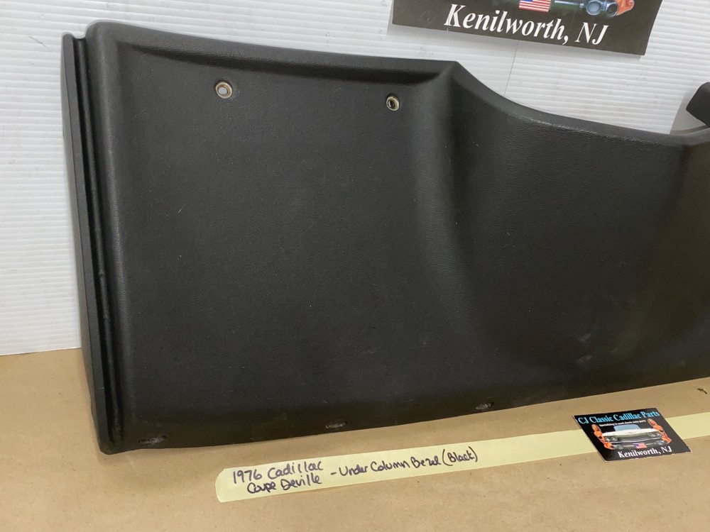 This OEM under column bezel trim is in very good to excellent condition. The vinyl is in very good condition with minimal blemishes.Overall very nice. All mounting holes/tabs are intact, no cracks. Please look at all pictures as they are part of the description. This was removed from a 1976 Cadillac Coupe Deville, but may fit other vehicles listed in compatibility chart; fitment based on Cadillac Master Parts List 6.760; please do your own research as we do not offer refunds if it does not fit your vehicle.
