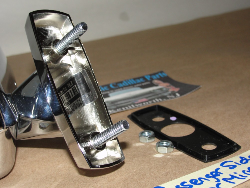 This Brand New passenger side door mirror is a brand new reproduction. Will fit Eldorado models only if you need one for the Deville, we have those available for sale also, or you can contact us. Even though we have many of these available, the one in the photos is the one you will get. This was made to look and function the same as the original, the only difference is the way it is mounted. Instead of having the external allan key hole to tighten, this mirror is mounted by 2 studs and tightened from the inside, so you will need to remove your door panel to install. The studs fit into the factory original stud holes in the door, so functionality is the same.Chrome and mirror may have some light blemishes/light scratches from production, but nothing major and barely noticeable if at all. If you're looking for 100% authenticity for concourse shows, this mirror is not 100% authentic as it does not have the allan keyhole. This was an optional mirror, so if you currently don;t have a passenger side door mirror, you will need to drill holes in the door to accept mounting studs. We do not have a template of where to drill the holes, so you will need to take the measurements from your driver side door. Please look at all pictures as they are part of the description. Please do your own research as we do not offer refunds if it does not fit your vehicle. Stk#152461.