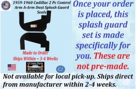 This is a brand new 2 piece splash dust guard set with staples that was MADE IN THE USA. This fits the 1959-1960 Cadillac Models and is perfect for that original look.
