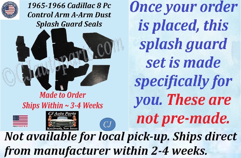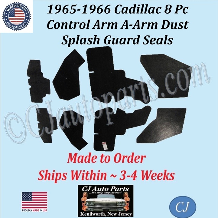 This is a brand new 8 piece splash dust guard set that was MADE IN THE USA. This fits the 1965-1966 Cadillac Models and is perfect for that original look.