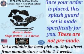 This is a brand new 8 piece splash dust guard set that was MADE IN THE USA. This fits the 1971-1972 Cadillac Deville and is perfect for that original look.