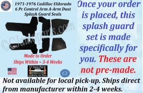 This is a brand new 8 piece splash dust guard set that was MADE IN THE USA. This fits the 1971-1976 Cadillac Eldorado and is perfect for that original look.