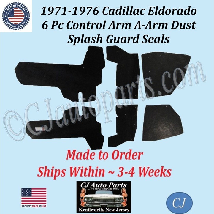This is a brand new 8 piece splash dust guard set that was MADE IN THE USA. This fits the 1971-1976 Cadillac Eldorado and is perfect for that original look.