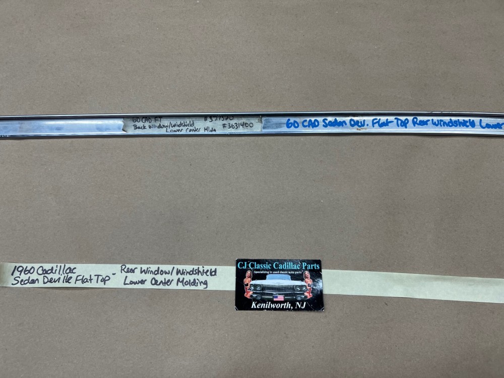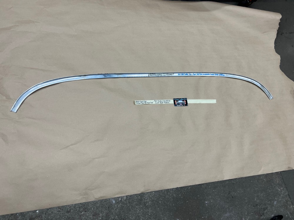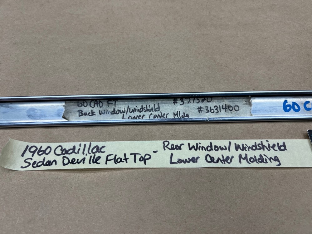This OEM rear windshield exterior lower center molding is in very good condition. Molding is straight, no major dings/dents, has a nice reflective shine, has average scratches typical of a used part its age. Please view the video (https://youtu.be/FsTjUtyWVbY ) and look at all pictures & compare to yours, as the pictures are part of the description. This was removed from a 1960 Cadillac Deville Flat Top, but may fit other vehicles listed in compatibility chart; fitment is verified by Cadillac Master Parts List 37.1520, but please do your own research as we do not offer refunds if it does not fit your vehicle.