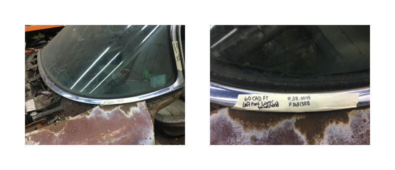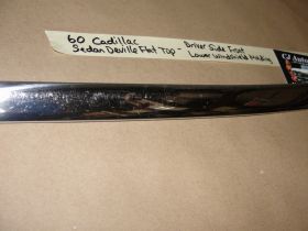 This OEM front exterior windshield driver side molding is in very good condition. Chrome has a decent shine, has average scratches/wear typical of a used part its age. No major dings/dents. Please view the video (https://youtu.be/ZGu0O0O801I) and look at all pictures & compare to yours, as the pictures are part of the description. This was removed from a 1960 Cadillac Deville Flat Top, but may fit other vehicles listed in compatibility chart; fitment is verified by Cadillac Master Parts List 38.0045, but please do your own research as we do not offer refunds if it does not fit your vehicle.
