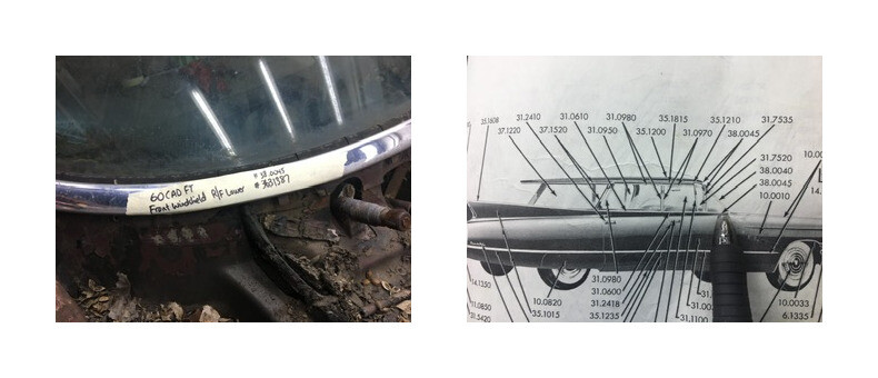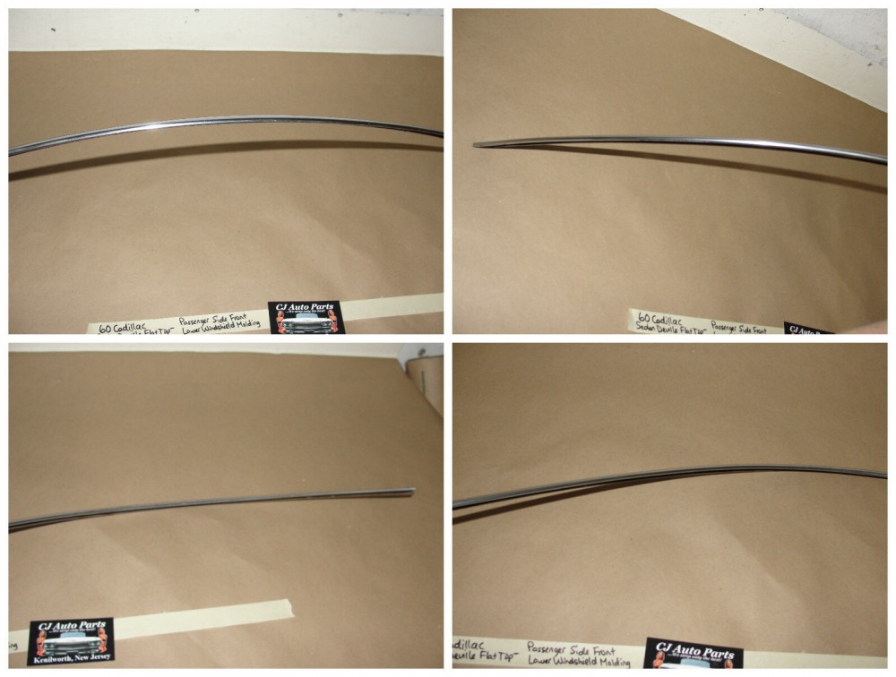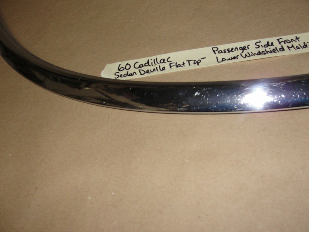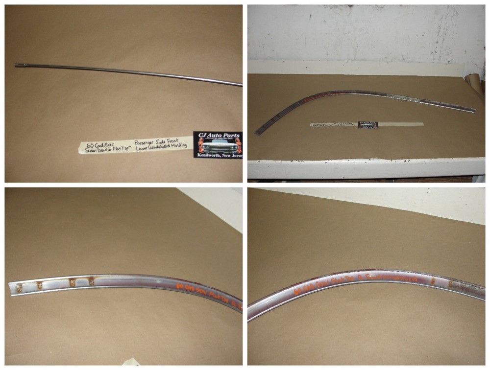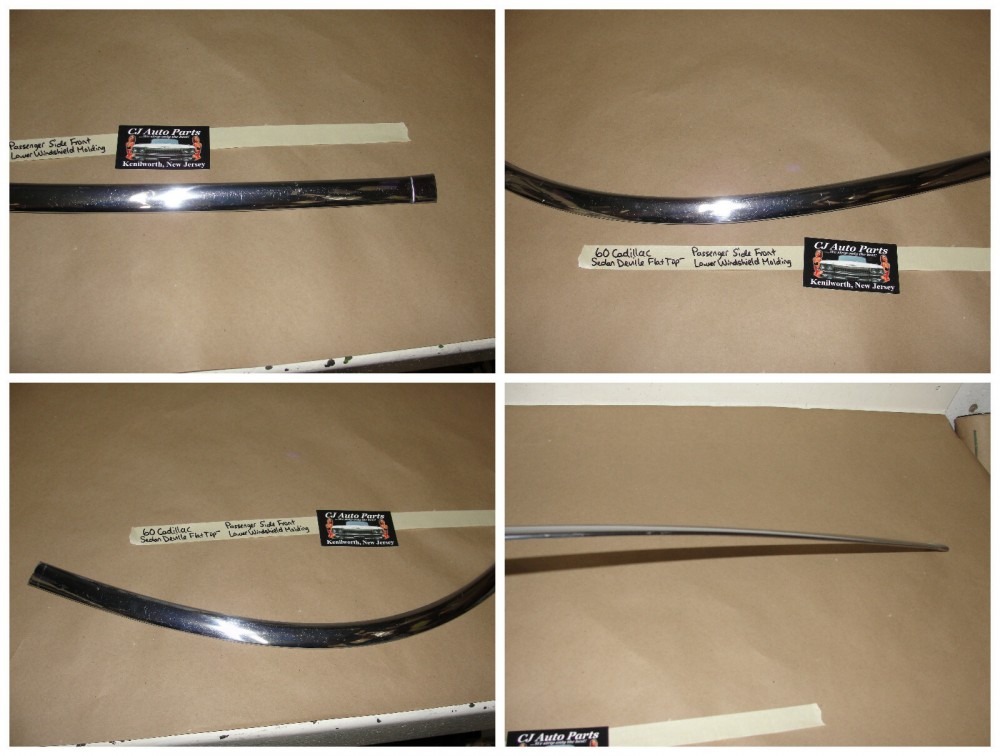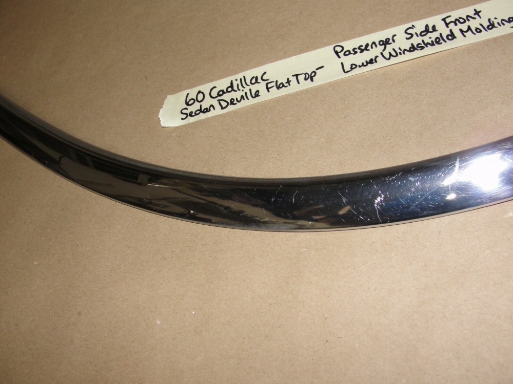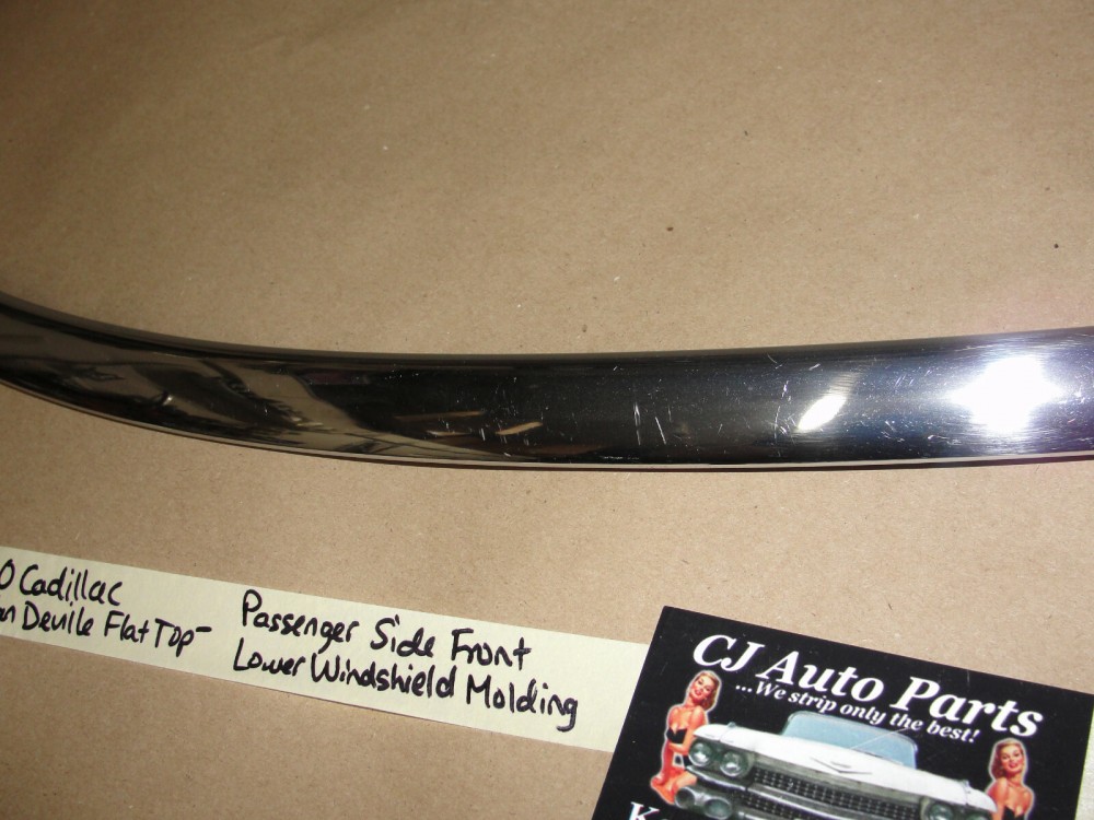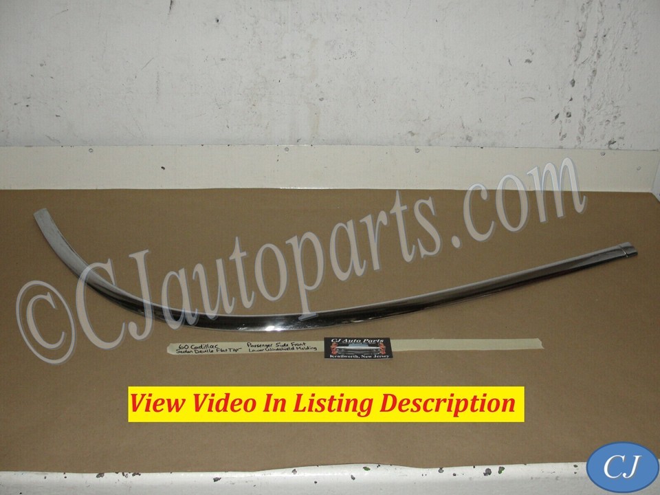 This OEM front exterior windshield passenger side molding is in very good condition. Chrome has a decent shine, has average scratches/wear typical of a used part its age. Has two very minor dings, no major dings/dents. Please view the video (https://youtu.be/D1WwS08GN4U ) and look at all pictures & compare to yours, as the pictures are part of the description. This was removed from a 1960 Cadillac Deville Flat Top, but may fit other vehicles listed in compatibility chart; fitment is verified by Cadillac Master Parts List 38.0045, but please do your own research as we do not offer refunds if it does not fit your vehicle.