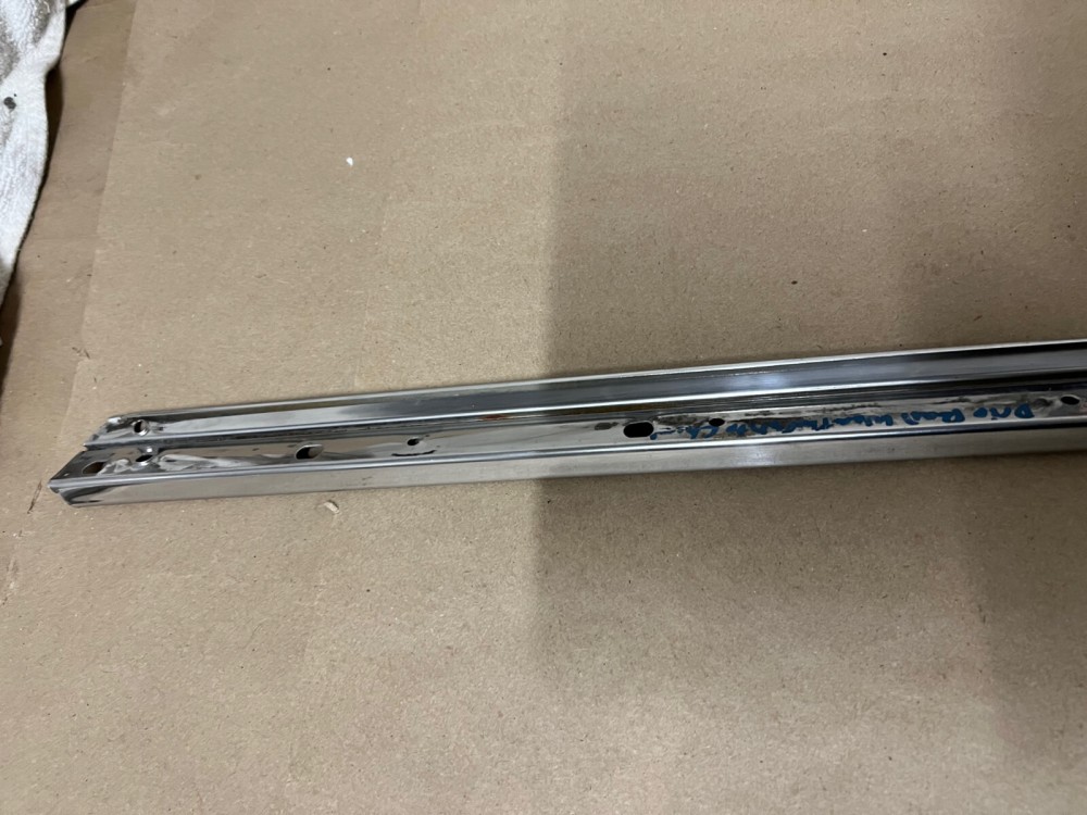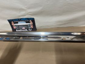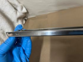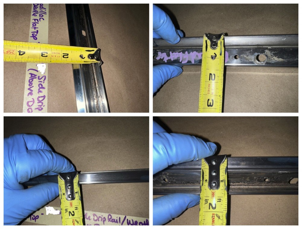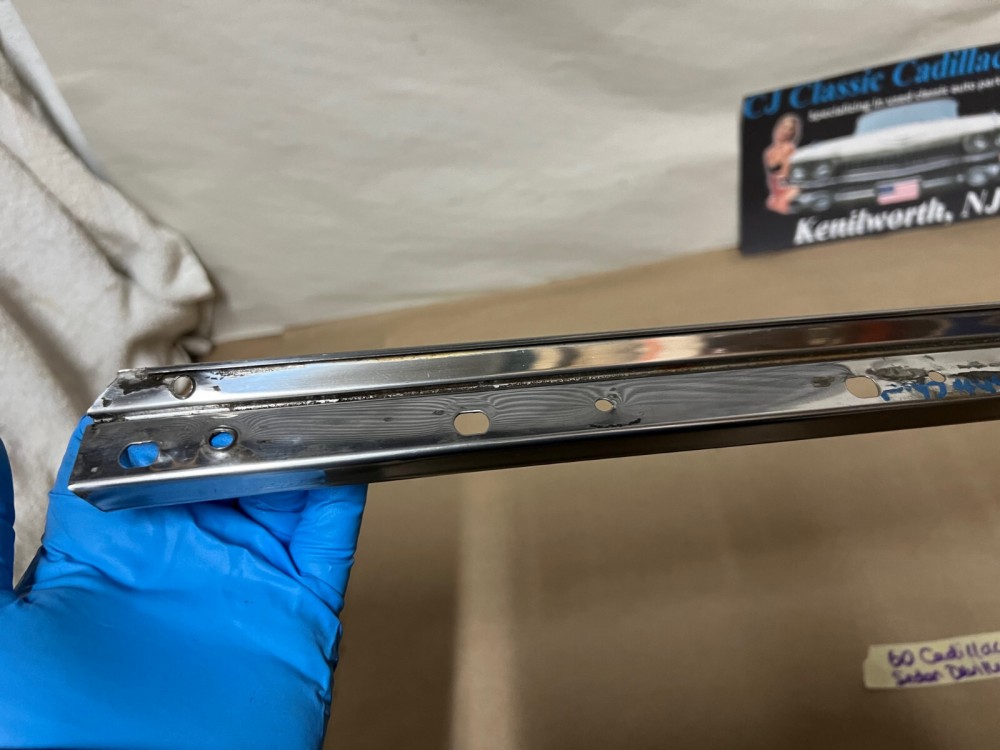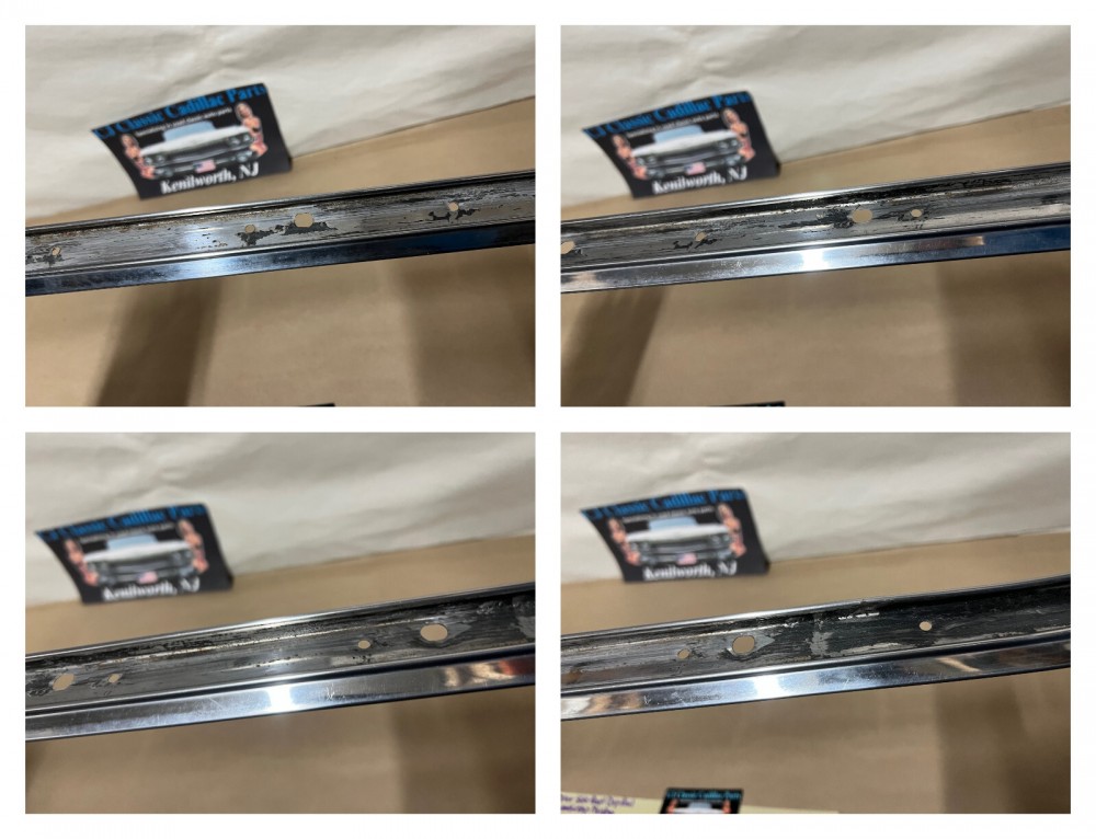 This OEM driver side roof rail weatherstrip retainer molding is in good condition. Chrome has a decent shine, has average light scratches/wear typical of a used part its age. Overall straight, which is hard to find as these moldings are difficult to remove without twisting. Has one minor ding, not very noticeable unless looking for it, otherwise no major dings/dents. Please view the video (https://youtu.be/f0Ne48eKsGQ ) and look at all pictures & compare to yours, as the pictures are part of the description. This was removed from a 1960 Cadillac Sedan Deville Flat Top (4 door, 4 window; body style 6339), but may fit other vehicles listed in compatibility chart; fitment is verified by Cadillac Master Parts List 35.1815 for the drip rail molding (the weatherstrip retainer molding is not listed in the book), but please do your own research as we do not offer refunds if it does not fit your vehicle.