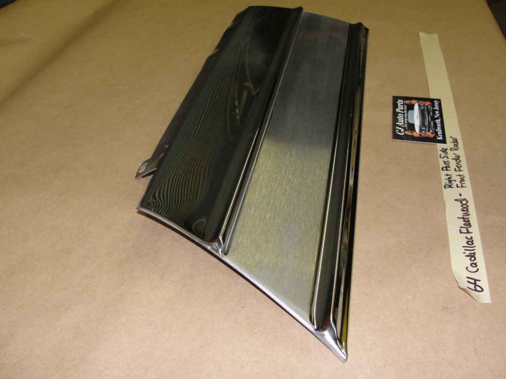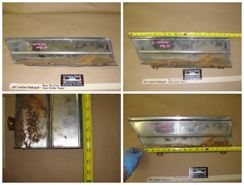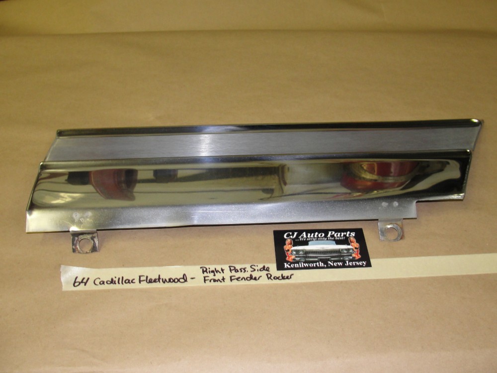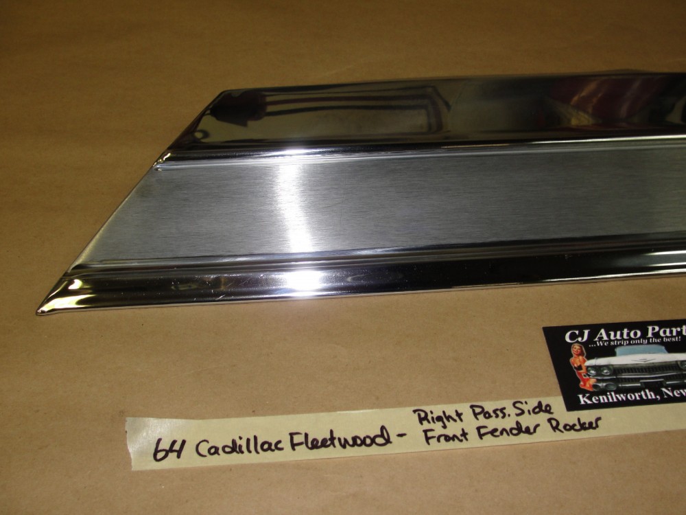 This OEM passenger side lower front door rocker molding is in excellent condition. Chrome has a nice high reflective shine. Has a couple of very light scratches and some road wear on the bottom section (aka from stones, etc) but no major dings/dents. Would look excellent on a cruise night car. Please view the video (https://youtu.be/AlaWblWxfbo) and look at all pictures for details as they are part of the description. This was removed from a 1964 Cadillac Fleetwood but may fit other vehicles listed in compatibility chart; please do your own research as we do not offer refunds if it does not fit your vehicle.