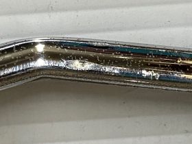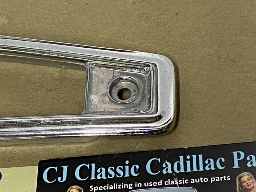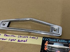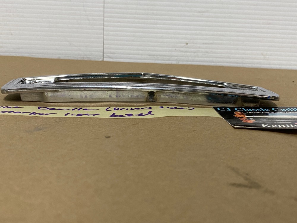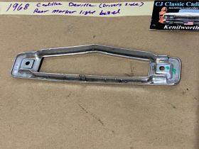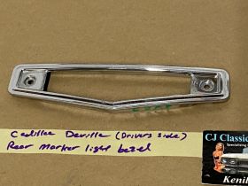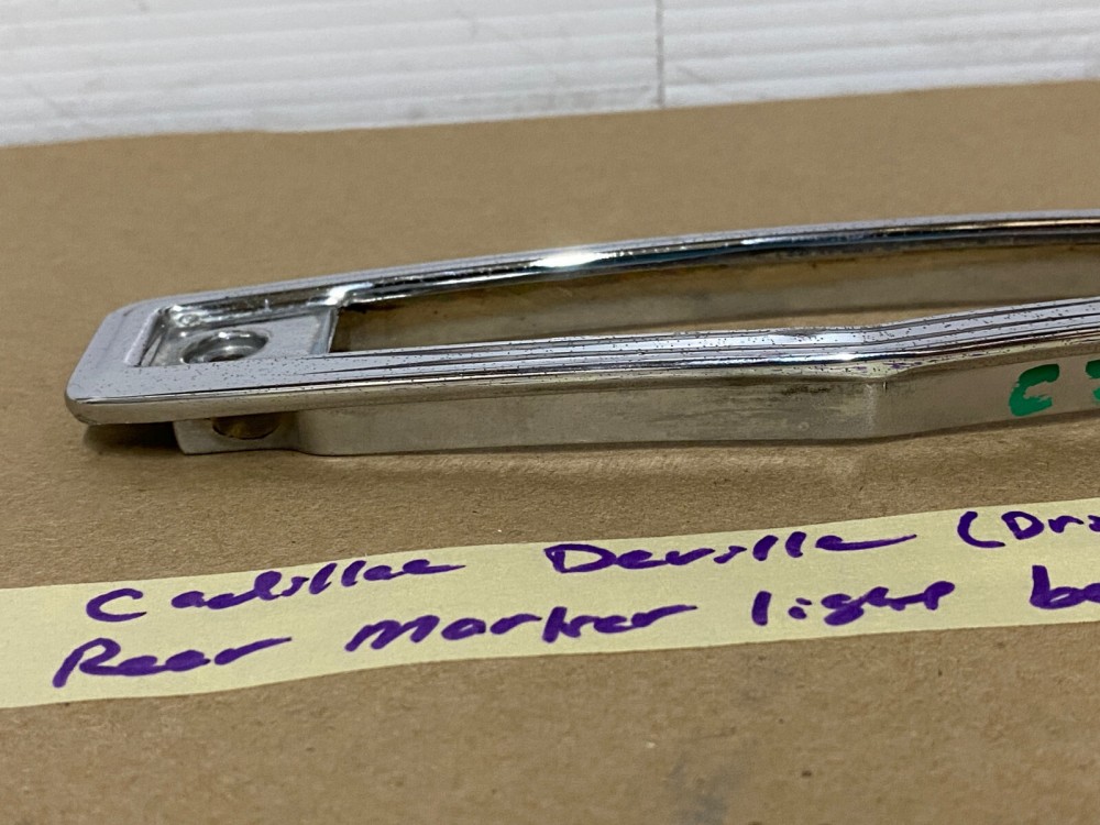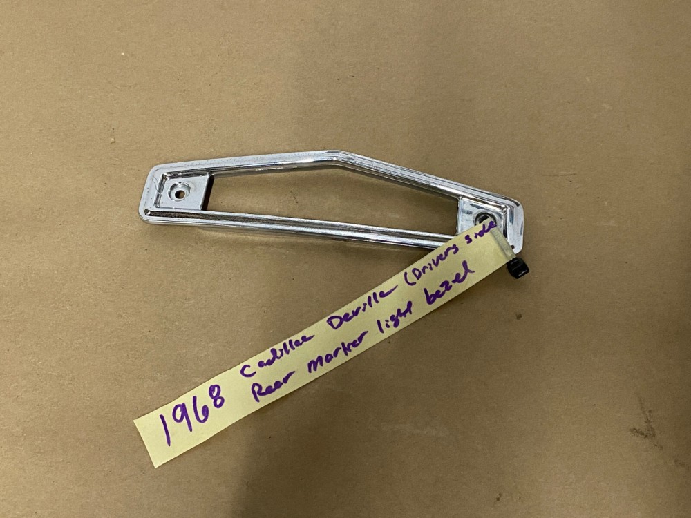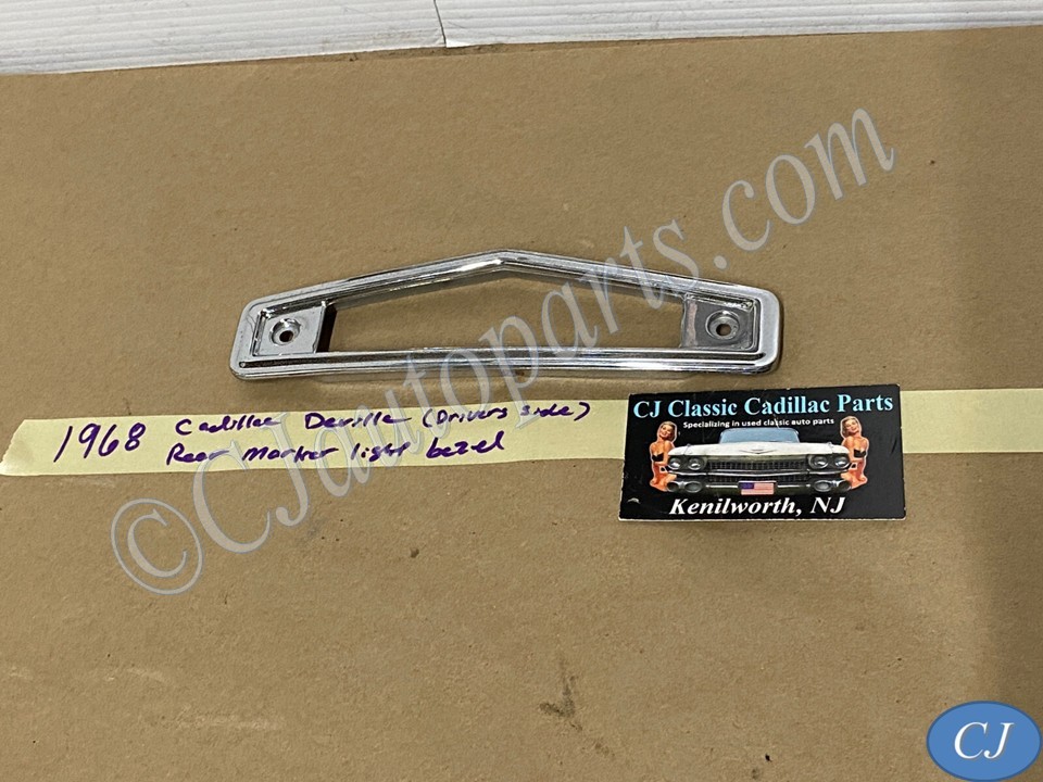 This OEM driver side rear marker bezel is in very good condition. Chrome has a nice reflective shine with minor blemishes typical for its age. Mounting holes are intact. Please look at all pictures as they are part of the description.  This was removed from a 1968 Cadillac Deville, but may fit other vehicles listed in compatibility chart; fitment verified by Cadillac Master Parts List 2.575; please do your own research as we do not offer refunds if it does not fit your vehicle.