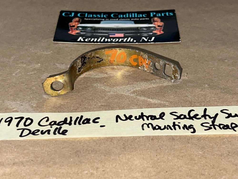 This is the mounting strap to mount the neutral safety switch to the lower steering column. Strap is in very good condition, still has original gold cad plating. Fully intact, no cracks.  See all pictures as they are part of the description. This was removed from a 1970 Cadillac Deville (look at all pics & compare to yours before purchasing as we do not take returns), but may fit vehicles listed in compatibility chart; vehicles in compatibility chart verified by Cadillac Master Parts Book # 4.054; please do your own research as we do not offer refunds if it does not fit your vehicle.