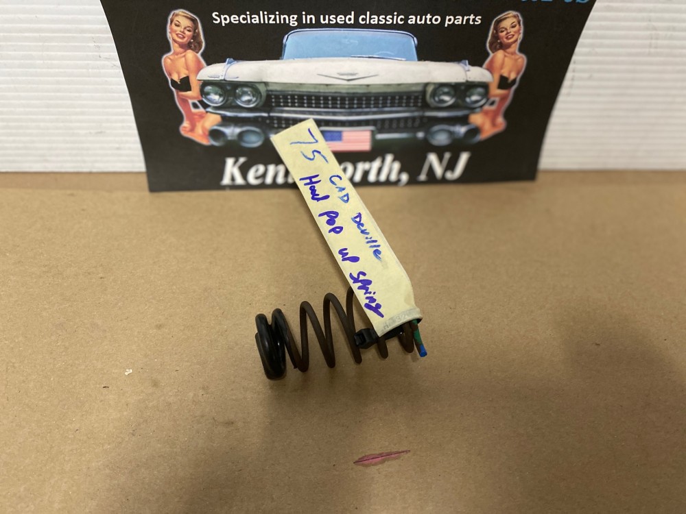 This OEM pop up spring is in very good to excellent condition. Has typical light surface rust. Spring feels strong. This was removed from a 1975 Cadillac Deville, but may fit other vehicles listed in compatibility chart; fitment is verified by Cadillac Master Parts List 8.083; but please do your own research as we do not offer refunds if it does not fit your vehicle.
