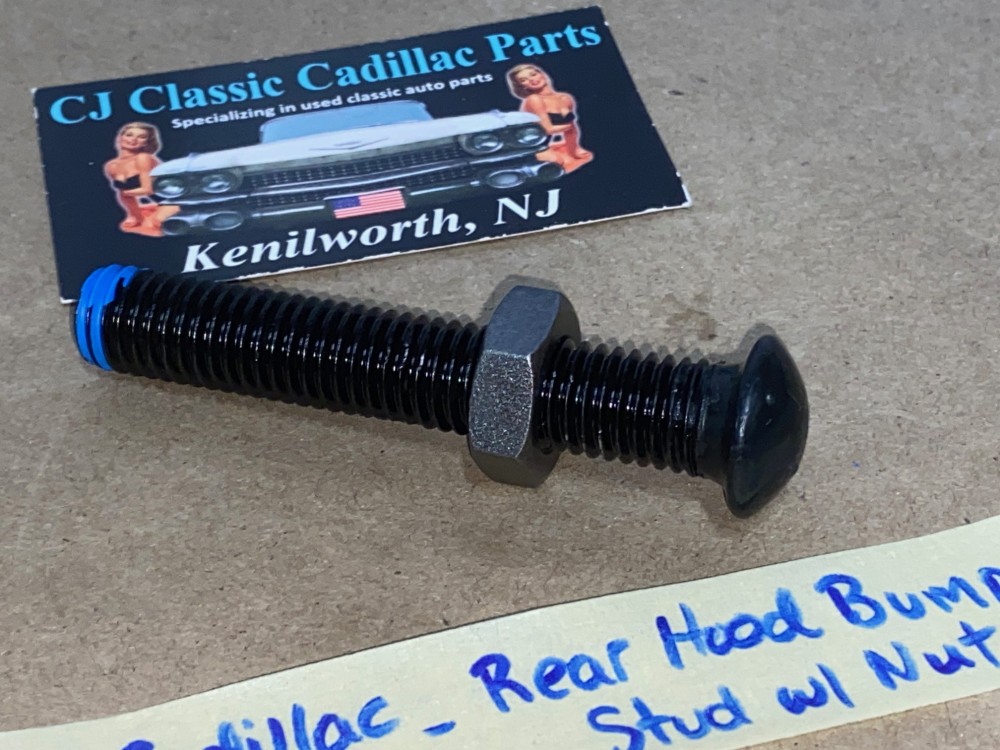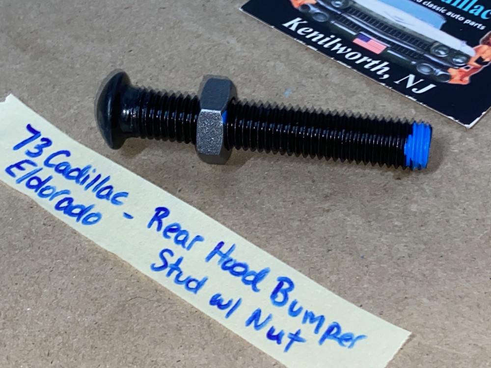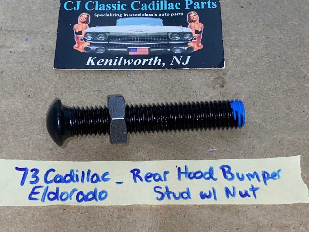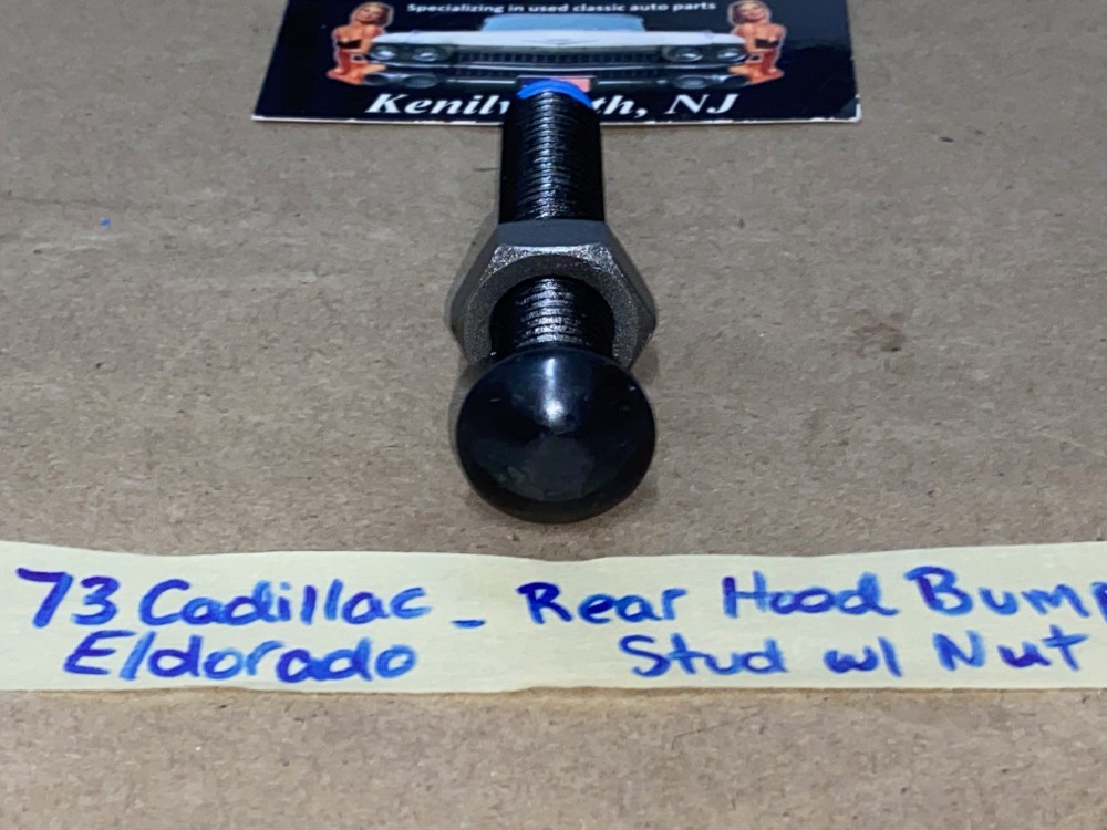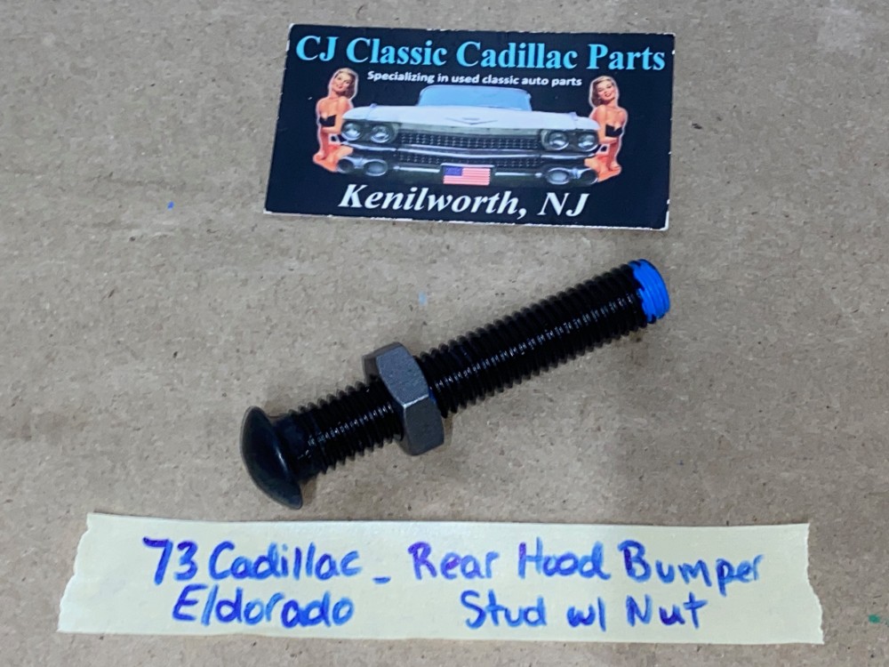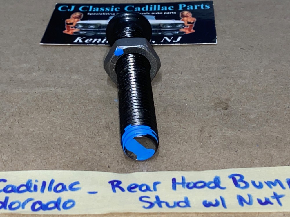 This is for ONE factory original rear hood bumper stud and nut. This mounts on the cowl to align the rear hood stop position. This Car requires 2. Threads were cleaned with a tap and nut threads smoothly. Please look at all pictures as they are part of the description. Fitment verified by Cadillac Master Parts List 8.024 #1498473 superceded by part #1609645; please do your own research as we do not offer refunds if it does not fit your vehicle.