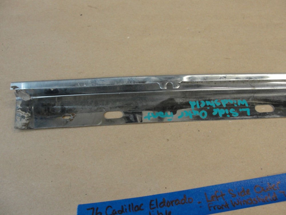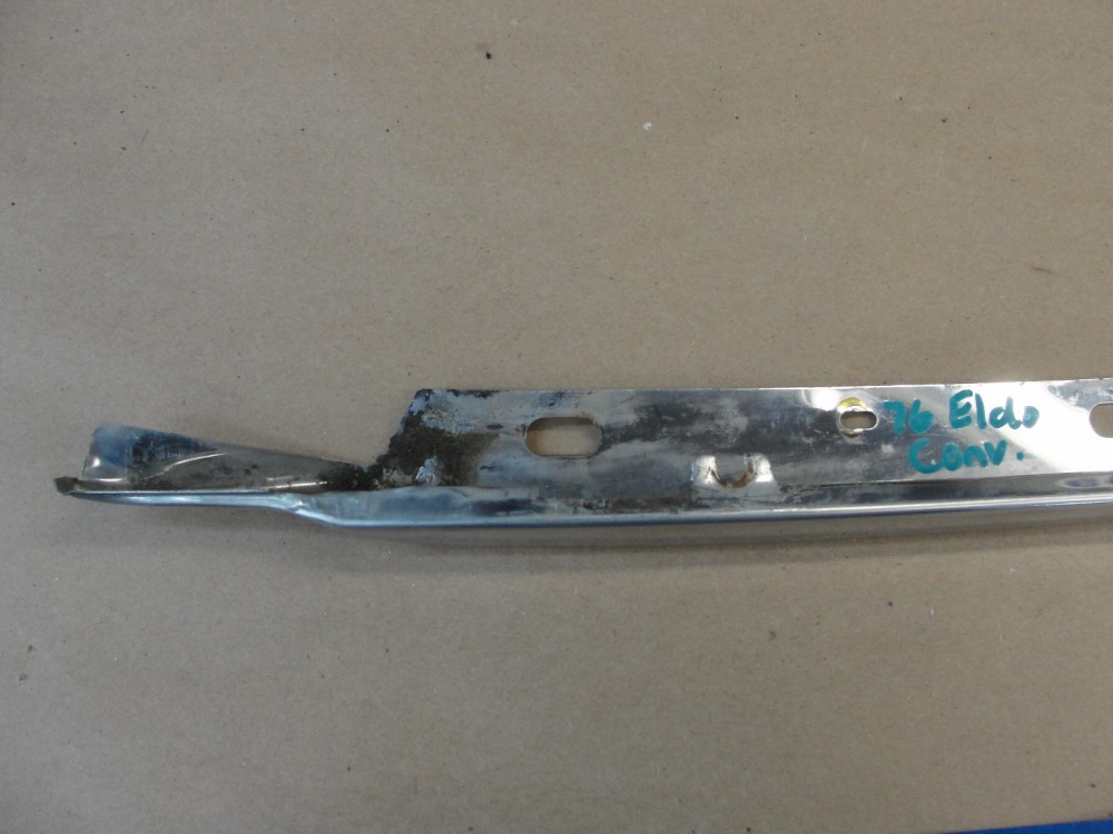 This OEM driver side outer windshield molding trim is in very good condition. The chrome has a nice, reflective shine, has some wear typical for its age with some light scratches, but no pitting. Trim is straight. Please look at all pictures as they are a part of the description. This was removed from a 1976 Cadillac Eldorado Convertible, but may fit other convertible only vehicles in compatibility chart; fitment is verified by Cadillac Master Parts List 10.093, please do your own research as we do not offer refunds if it does not fit your vehicle.