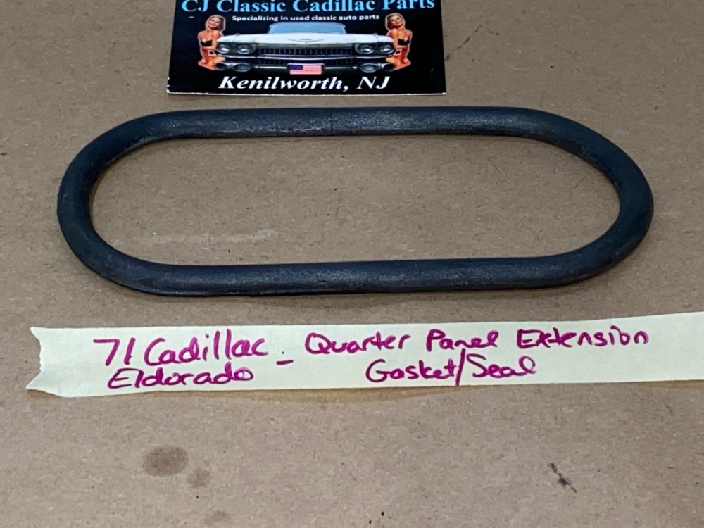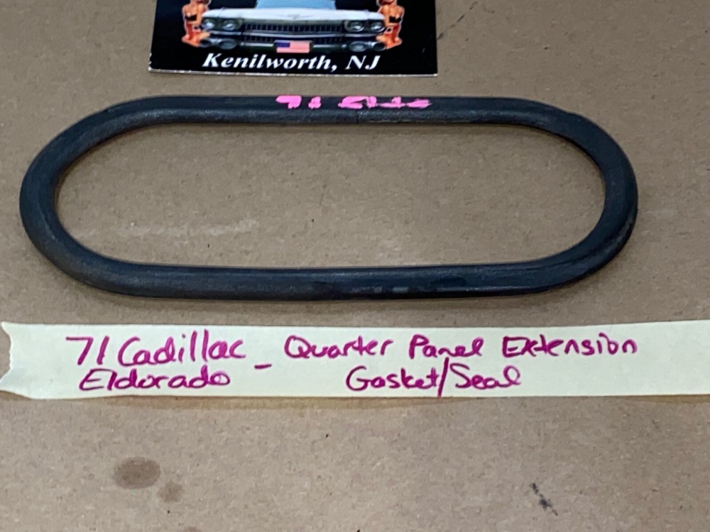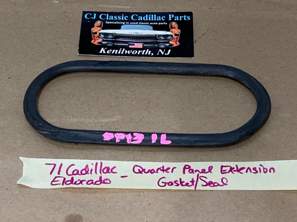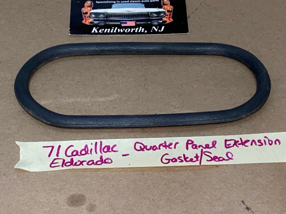 This OEM rear quarter panel extension tail light surround gasket seal is in very good condition. Rubber seal is still nice and pliable, not dry rotted. Has average wear typical of a used part its age. This mounts on the back of the quarter panel extension (See Picture #2 for reference, quarter panel extension is NOT included with the purchase, this is for the gasket ONLY). Please look at all pictures as they are part of the description. This was removed from a 1971 Cadillac Eldorado, but may fit other vehicles listed in compatibility chart; fitment verified by Cadillac Master Parts List 2.684; please do your own research as we do not offer refunds if it does not fit your vehicle.