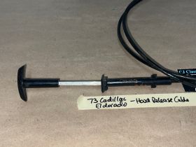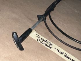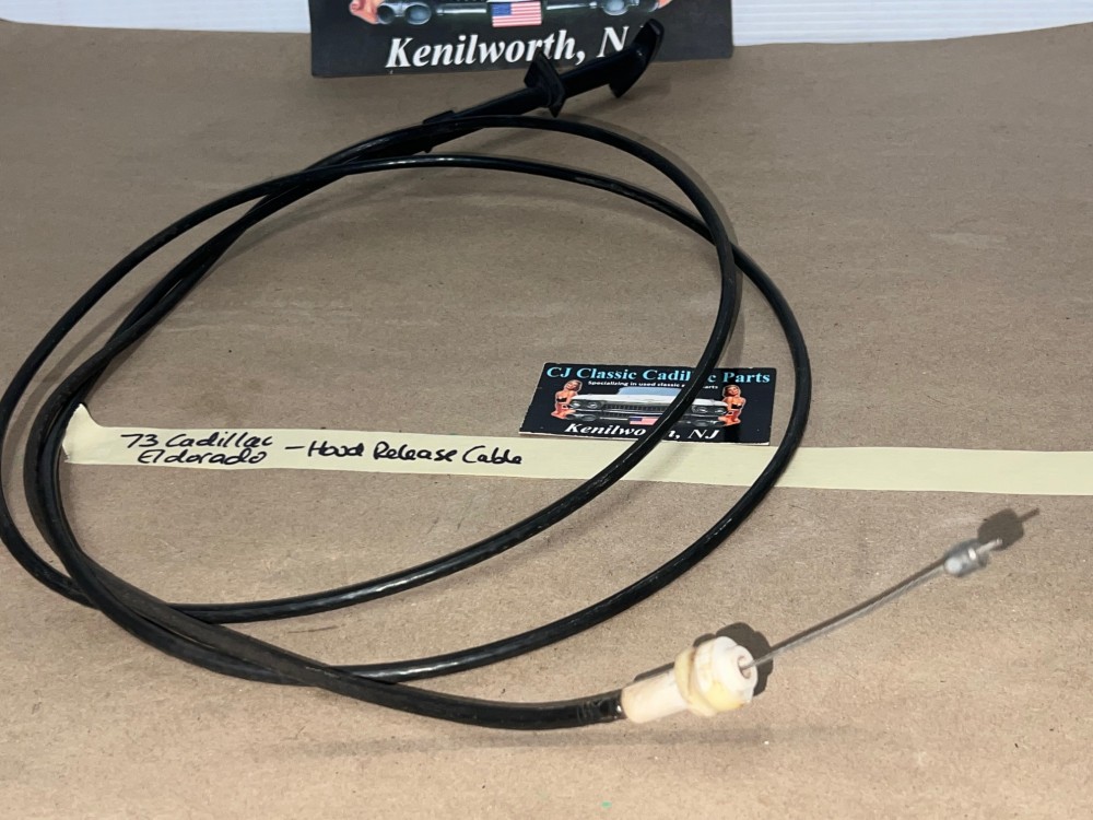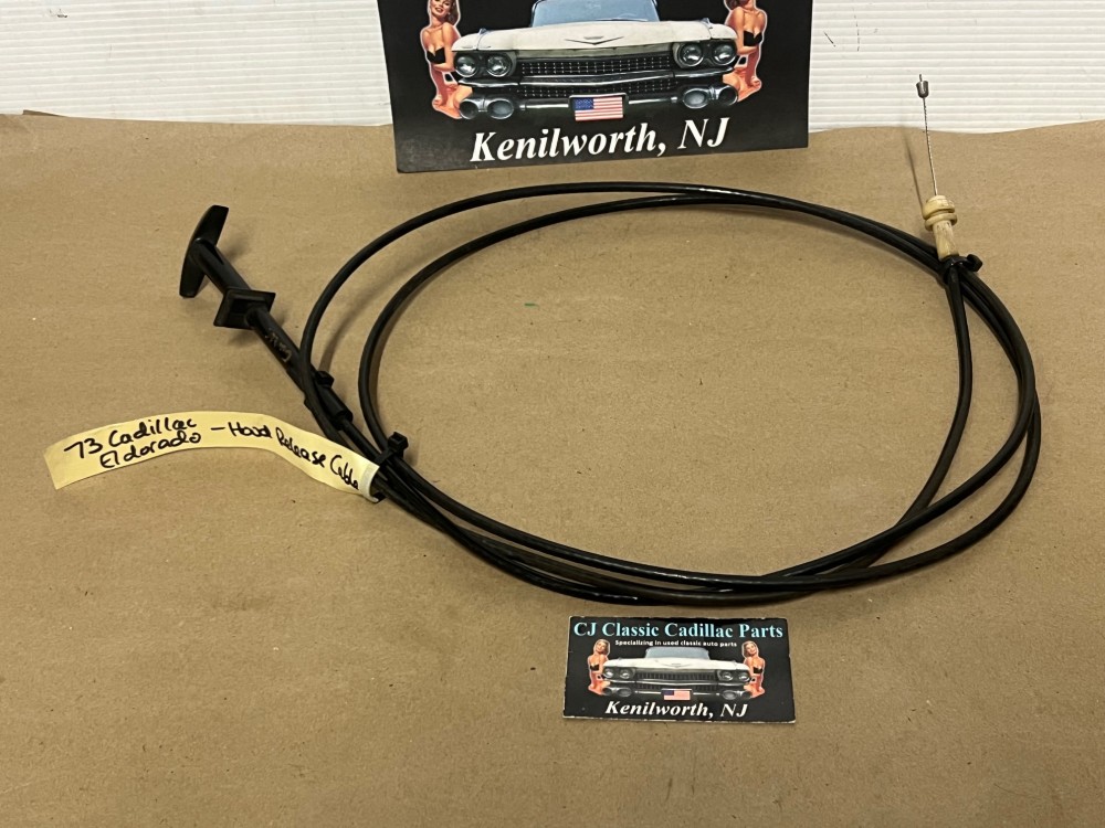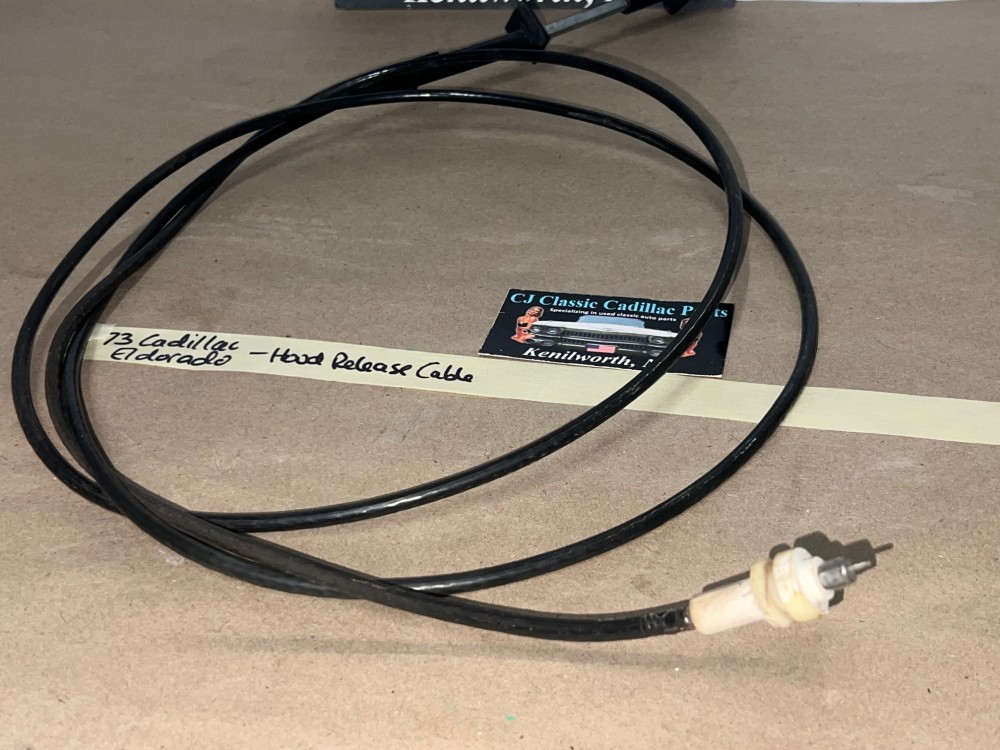 This OEM hood release lever cable is in very good condition. Cable moves in and out smoothly as it should to unlatch the hood. White lettering is still nice and vibrant. Average wear typical of a used part its age. Please look at all pictures as they are part of the description. This was removed from a 1973 Cadillac Eldorado but may fit other vehicles listed in compatibility chart; fitment based on Cadillac Master Parts List 8.075, please do your own research as we do not offer refunds if it does not fit your vehicle.