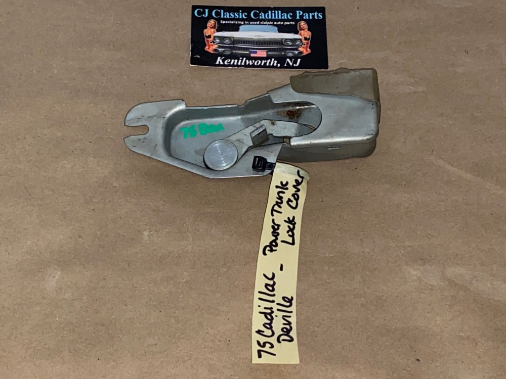 This OEM trunk lock release actuator is in very good condition. Lever moves as it should. Average wear for its age. Please look at all pictures, as they are part of the description. This was removed from a 1975 Cadillac Deville, but may fit other vehicles listed in compatibility chart, please compare part number to yours; fitmemt verified by Cadillac Master Parts list 12.242; please do your own research as we do not offer refunds if it does not fit your vehicle.