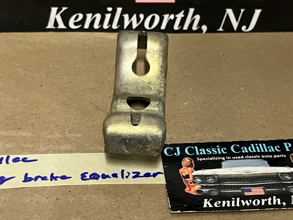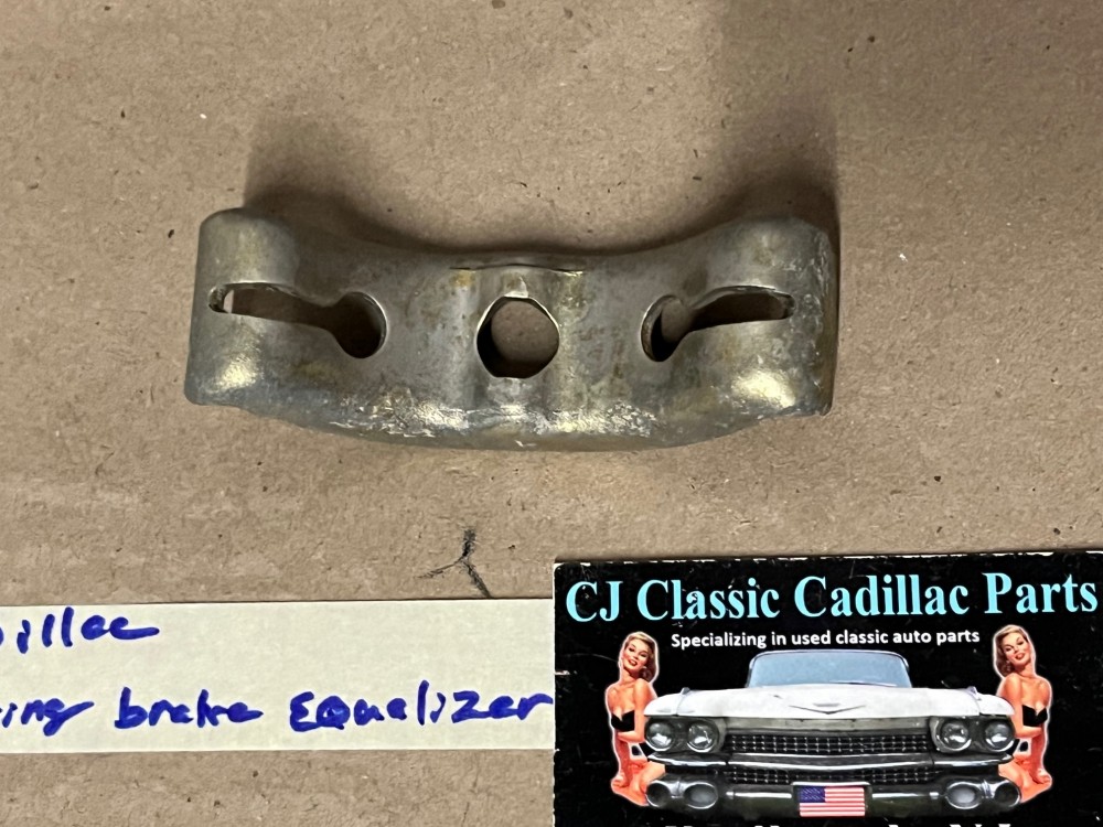 This OEM parking brake equalizer is in excellent condition. There are 2 different styles, this has the dimple in the center. This was removed from a 1961 Cadillac, but may fit other vehicles in compatibility chart; fitment verified by Cadillac Master Parts List 4.765; please do your own research as we do not offer refunds if it does not fit your vehicle.