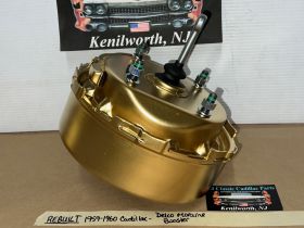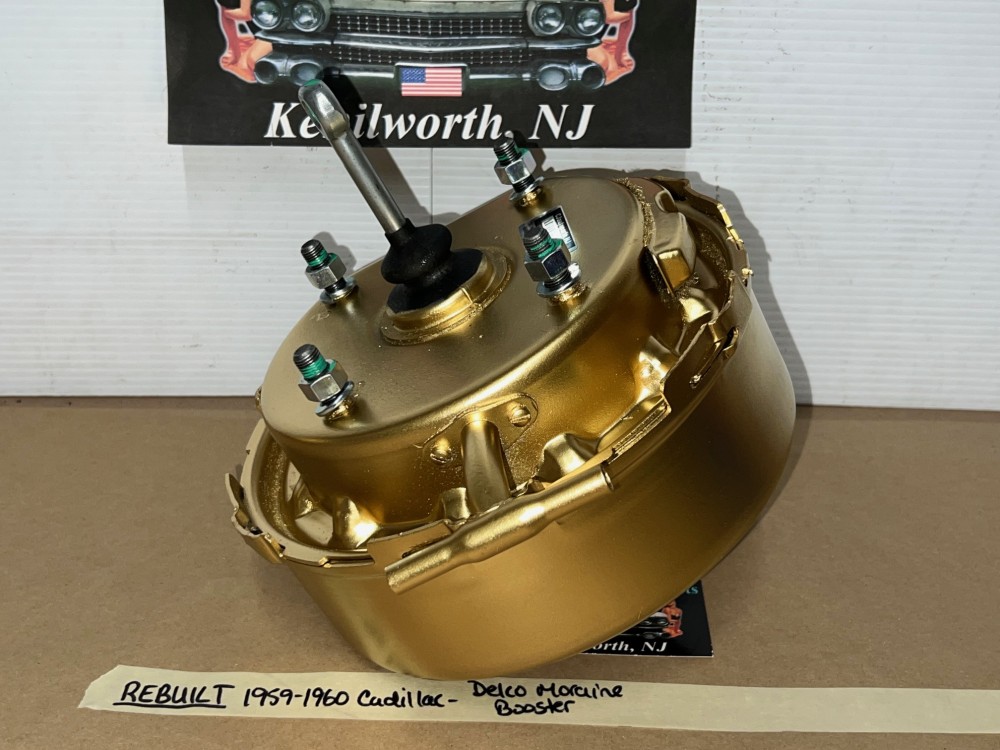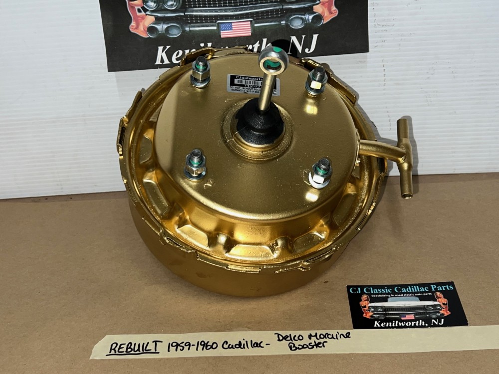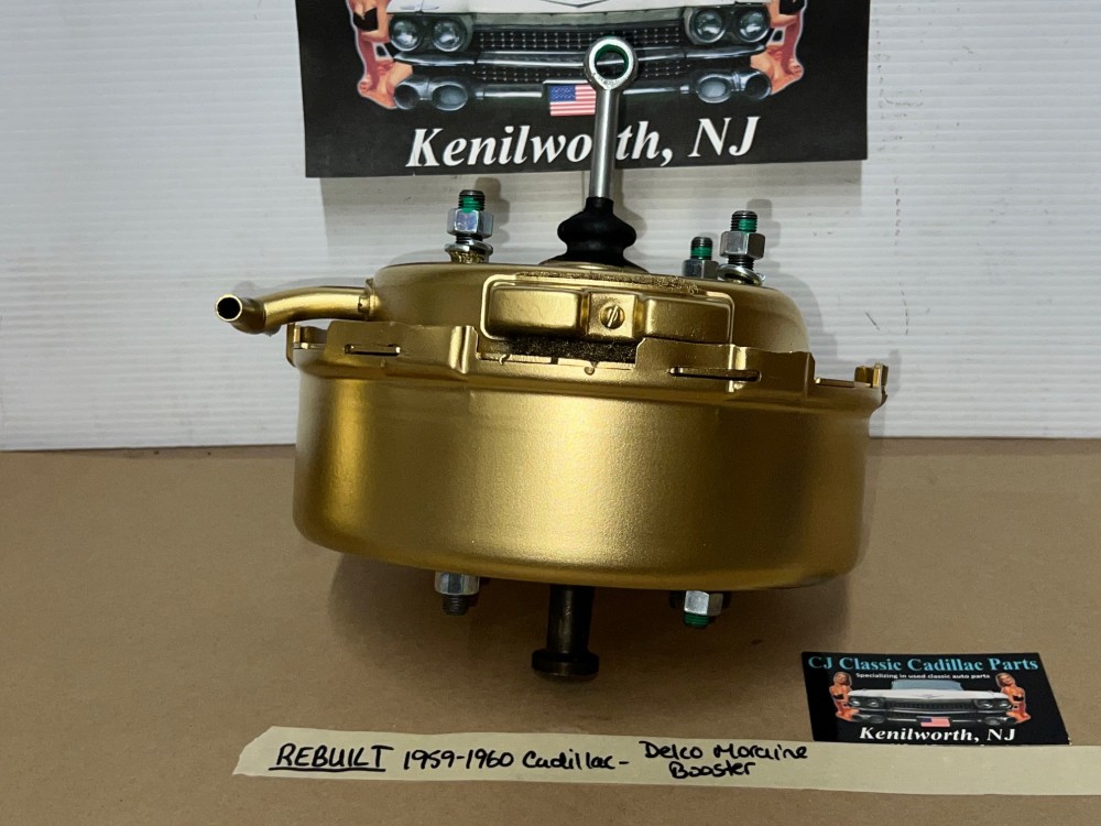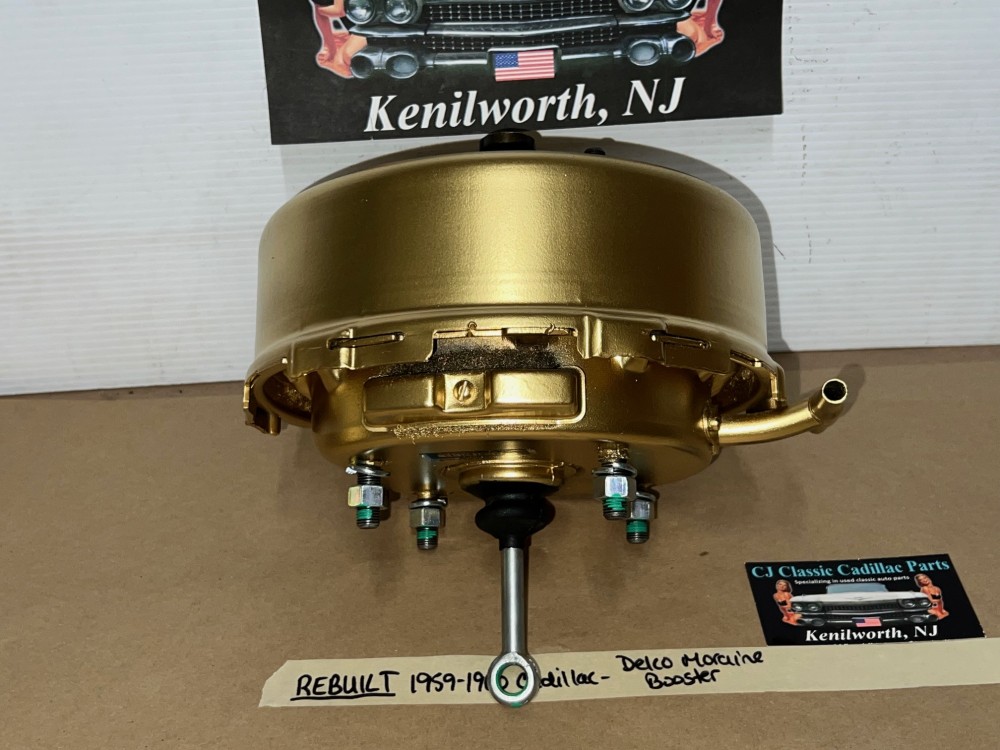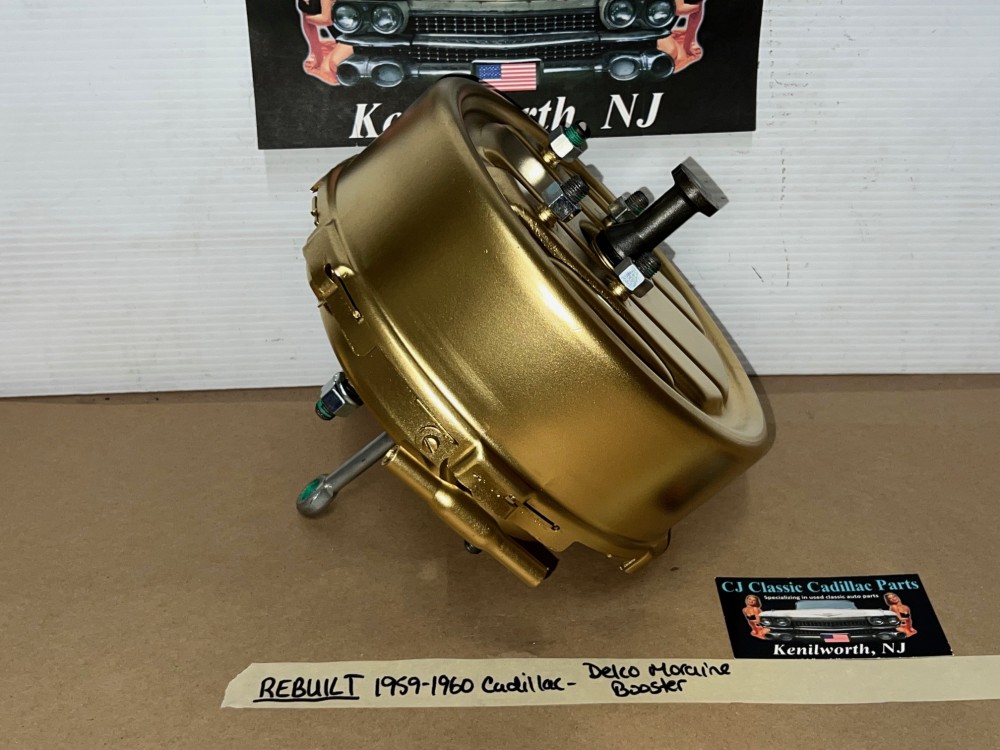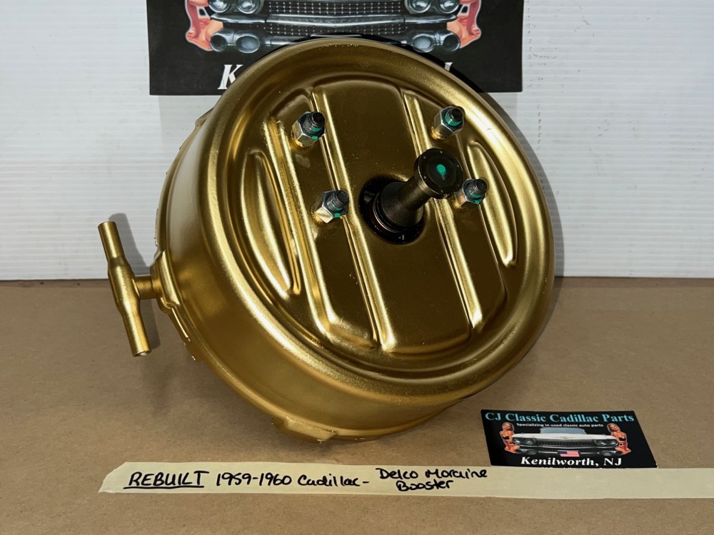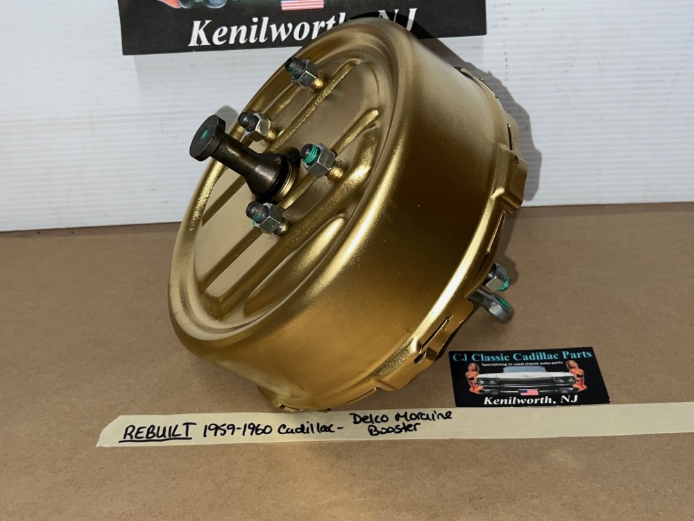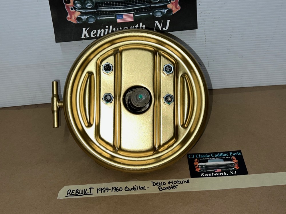 This is a factory original Delco Moraine booster, ready to mount on your car. The booster has been painted to factory original color with a gold cad paint. This is not a cheap aftermarket booster and is period correct for your vehicle. Booster must be a 1959-1960 Delco Moraine in order to qualify for the core refund. Stk#746522.