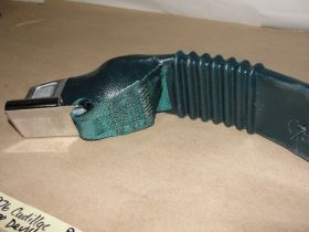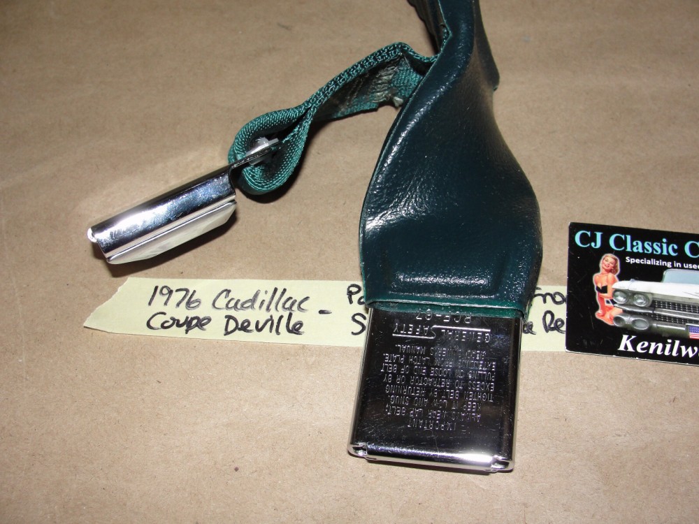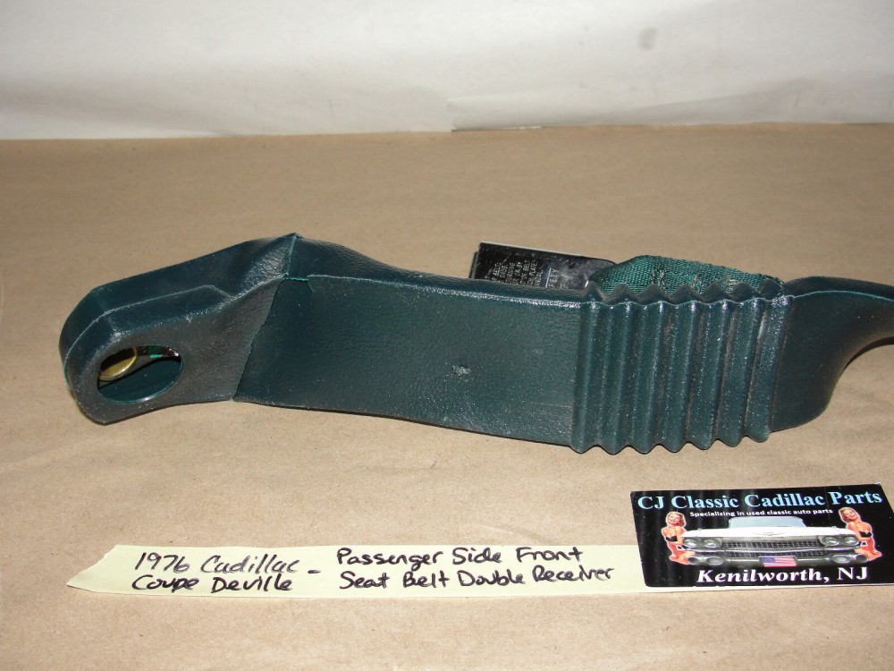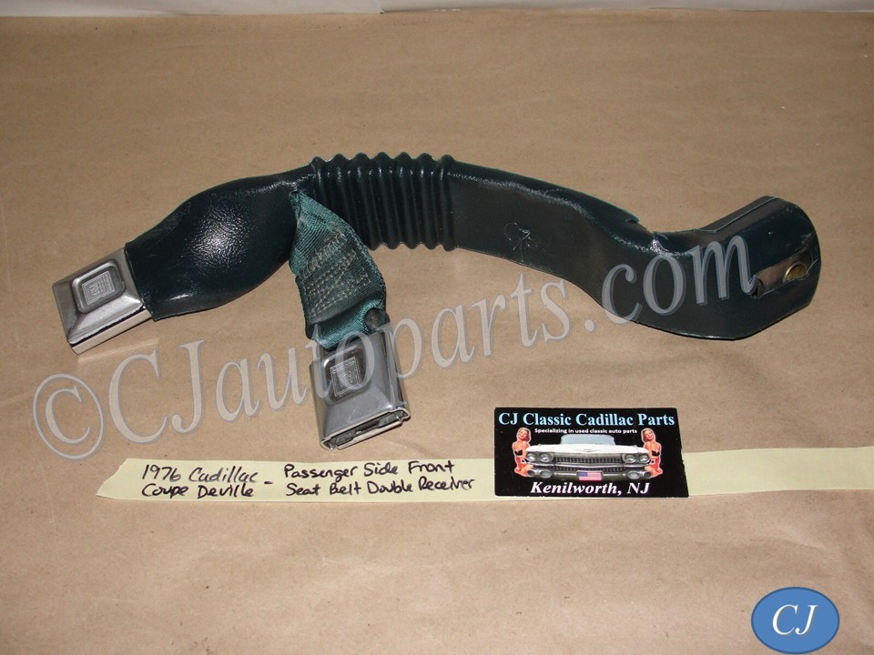 This OEM passenger side front seat belt double buckle receiver is in excellent condition. This was removed from a show car that was in a front end collision. You won't find a cleaner seat belt than this. Both receivers operate smoothly as they should to attach and release seat belt buckle. No major pitting, extremely clean. The plastic sleeve is intact where it sticks out from the seat, which is commonly all cracked up. The only major cracks in the plastic area are the bottom where it mounts to the floor and is no readily seen. Please view the pictures as they are a part of the description. This was removed from a 1976 Cadillac Coupe DeVille, but may fit other vehicles in compatibility chart; please do your own research as we do not offer refunds if it does not fit your vehicle.