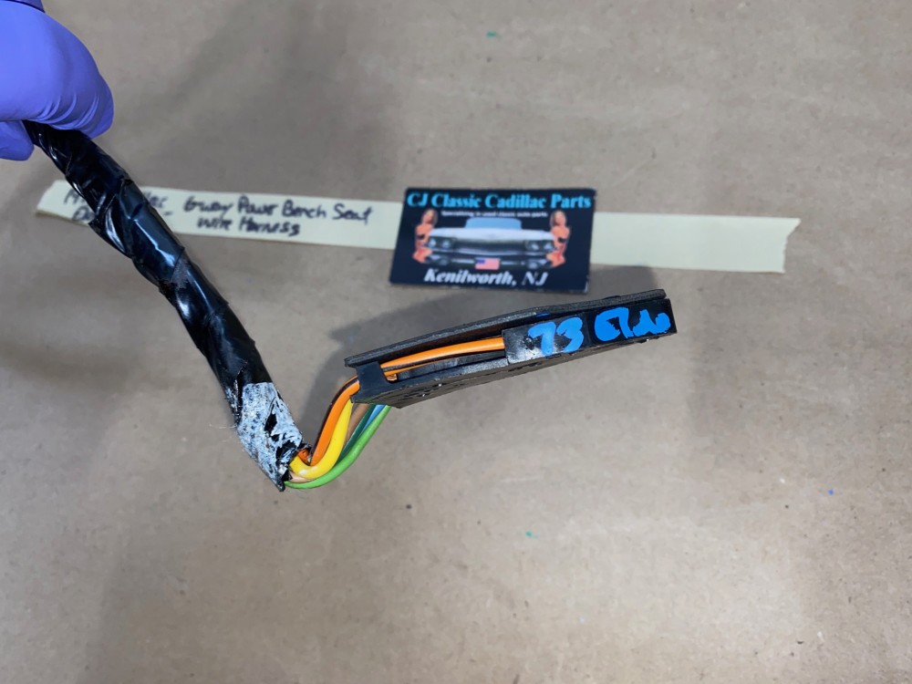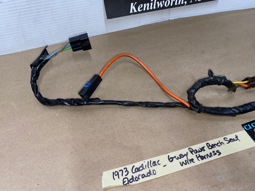 This OEM 6 way power seat wire harness is in excellent condition. Connectors are all clean, not corroded, not melted. Factory original wire harness for 6 way power bench seat. Please look at all pictures as they are part of the description. This was removed from a 1973 Cadillac Eldorado, but may fit other vehicles listed in compatibility chart; fitment based on Cadillac Master Parts List 13.090, #9663221 (Seat to Switch), #9821189 (Power Feed), please do your own research as we do not offer refunds if it does not fit your vehicle.