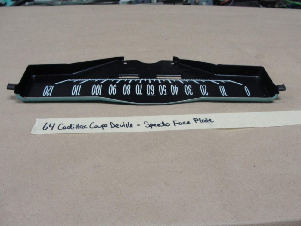 This OEM speedometer face plate which is in excellent condition. Numbers/markings are still nice and vibrant. No rust. Please look at all pictures as they are part of the description. This was removed from a 1964 Cadillac Deville, but may fit other vehicles listed in compatibility chart; please do your own research as we do not offer refunds if it does not fit your vehicle.