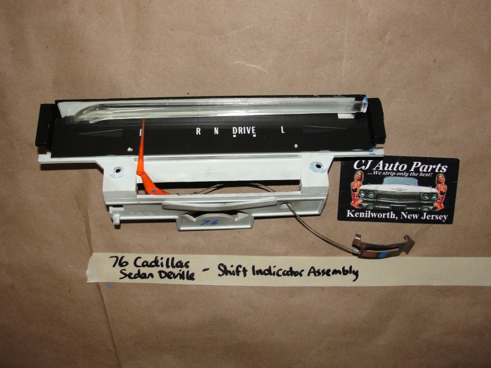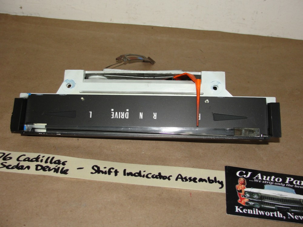 This OEM shift indicator is in very good condition. Shift indicator needle moves smoothly as it should, see video for details on operation. The cable is intact and the area where cable comes through the plastic housing is not worn. The face of the indicator is in nice condition with minor wear for its age. Comes with everything seen in the pictures. Please view the video (https://youtu.be/Vpg5ctr6PUU ) and all photos as they are a part of the description. This fits 1974 Cadillac with only the cosmetic difference of the background is silver while the 1975-1976 is black. This was removed from a 1976 Cadillac Sedan Deville, but may fit other vehicles listed in compatibility chart; please do your own research as we do not offer refunds if it does not fit your vehicle. There may be different options for the same car, so be sure to match this one up with yours before purchase.