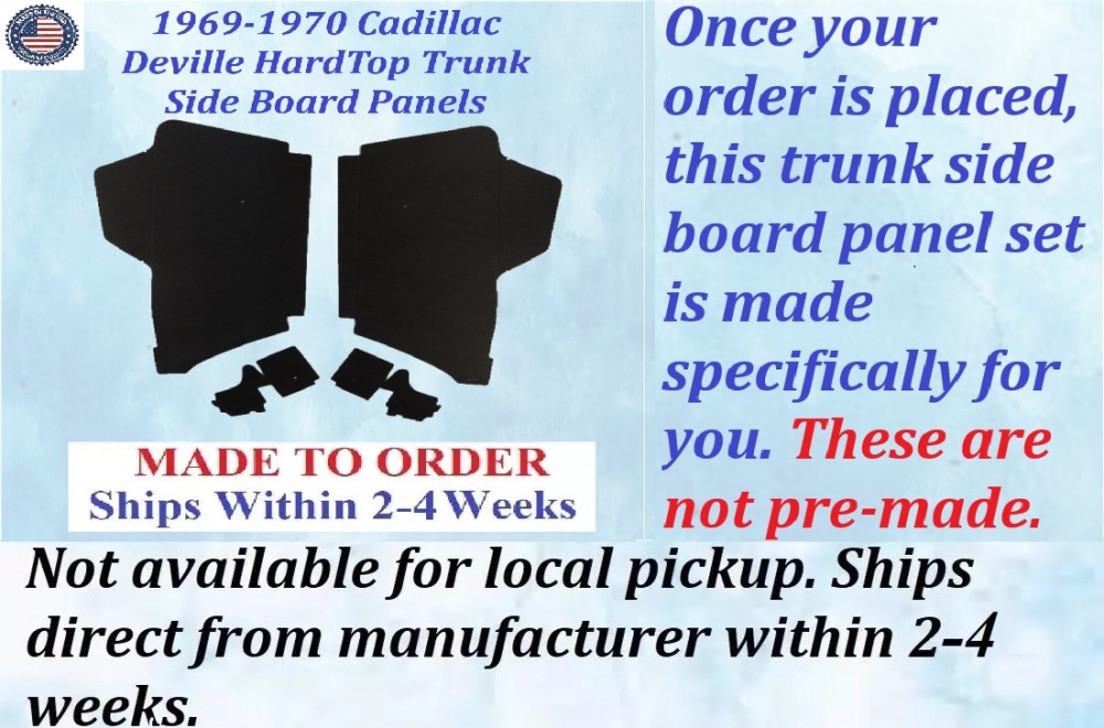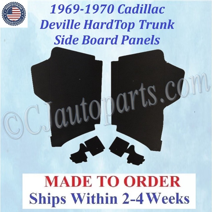 This is a brand new trunk side board panels set that was MADE IN THE USA. This fits the 1969-1970 Cadillac Deville Hardtop and is perfect for that original look.