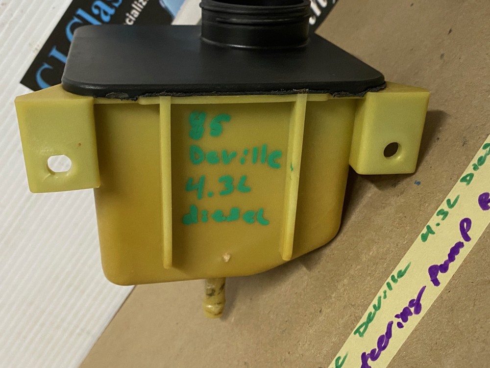 This is a one year only reservoir for 1985 Cadillac models with the 4.3L Diesel Engine. Reservoir is fully intact, no cracks, overall very clean. Comes with the lid as pictured. This was removed from a 1985 Cadillac Deville with a 4.3L diesel engine, but may fit other vehicles listed in compatibility chart; please do your own research as we do not offer refunds if it does not fit your vehicle.