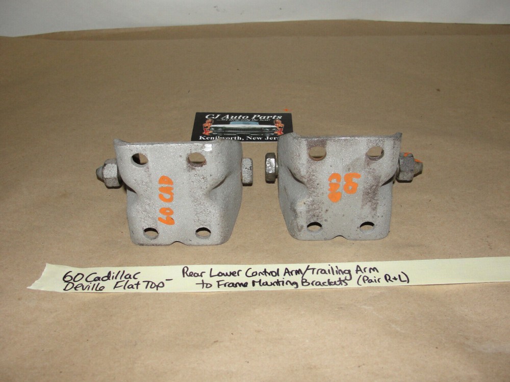 This set of OEM rear lower control arm trailing arm to frame mounting brackets with bolt are in good condition. This is for the pair - right and left. They have been sandblasted and are nice, solid and straight. No rot. Please look at all pictures as they are part of the description. This was removed from a 60 Cadillac Deville Flat Top, but may fit other vehicles in the fitment chart, fitment based on Cadillac Master Parts List 17.1425. Please do your own research in regards to fitment, as we do not offer refunds if it does not fit your vehicle.