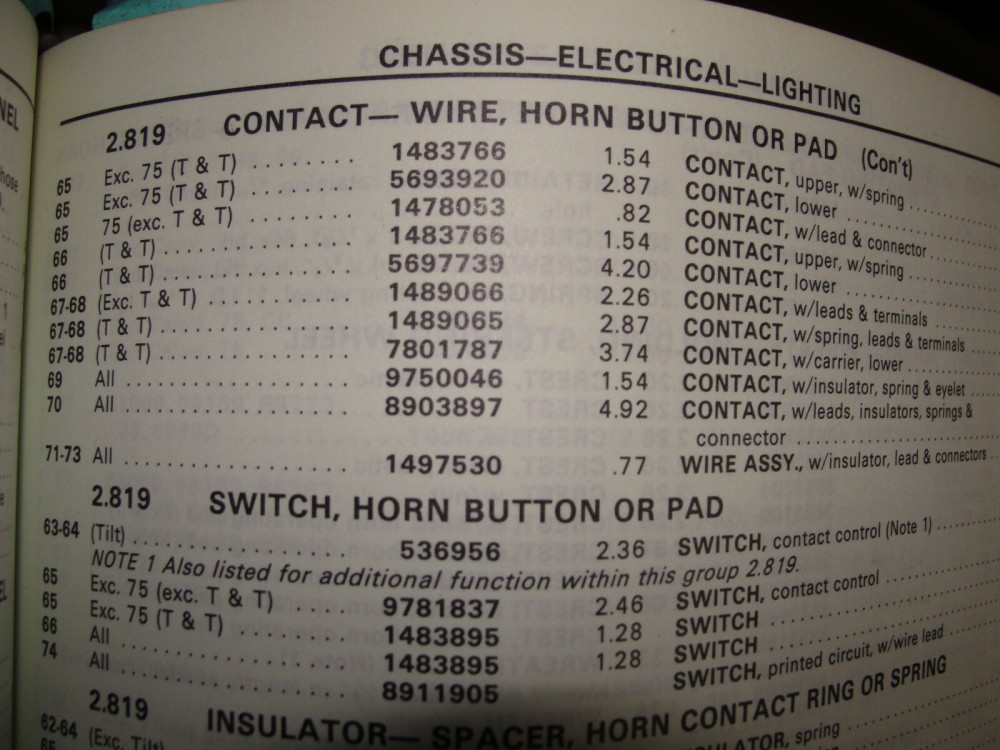 This OEM tilt telescopic column steering wheel upper horn contact with spring is in excellent condition. Horn contact is intact, no cracks spring tension is good. Please look at all pictures as they are part of the description. This was removed from a 1965 Cadillac Deville, but may fit other vehicles listed in compatibility chart; fitment based on Cadillac Master Parts List 2.819, please do your own research as we do not offer refunds if it does not fit your vehicle.
