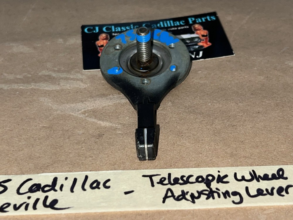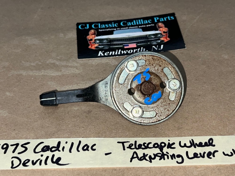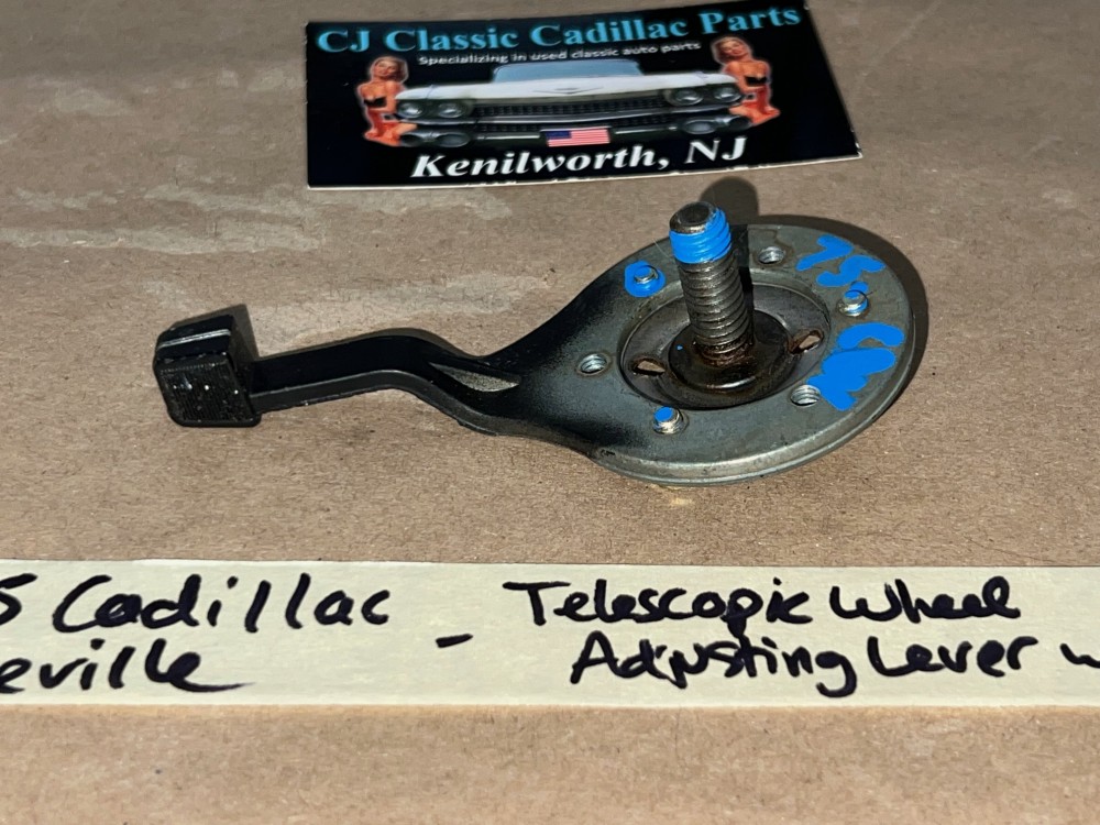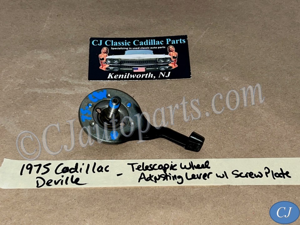 This tilt/telescopic steering wheel adjusting lever and screw plate are in excellent condition. Threads are in good condition. This is the lever to adjust the telescopic portion of the steering wheel/column. See all pictures as they are part of the description. This was removed from a 1975 Cadillac Deville (look at all pics & compare to yours before purchasing as we do not take returns), but may fit vehicles listed in compatibility chart; vehicles in compatibility chart verified by Cadillac Master Parts Book # 6.514; please do your own research as we do not offer refunds if it does not fit your vehicle.