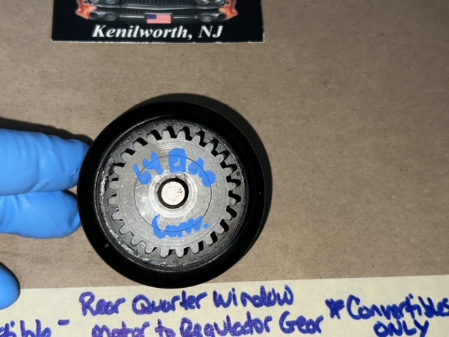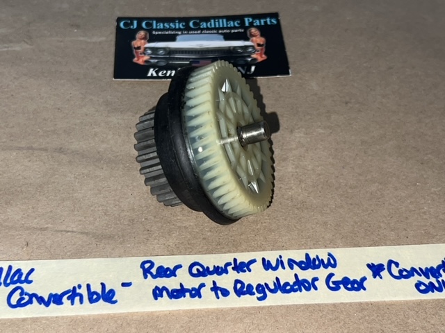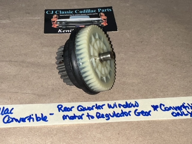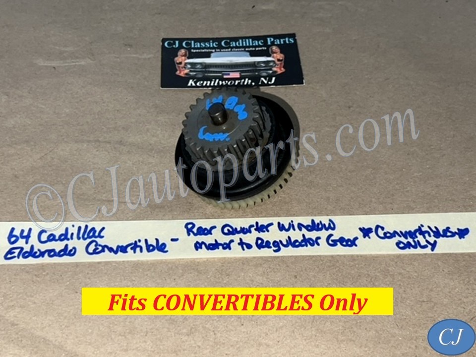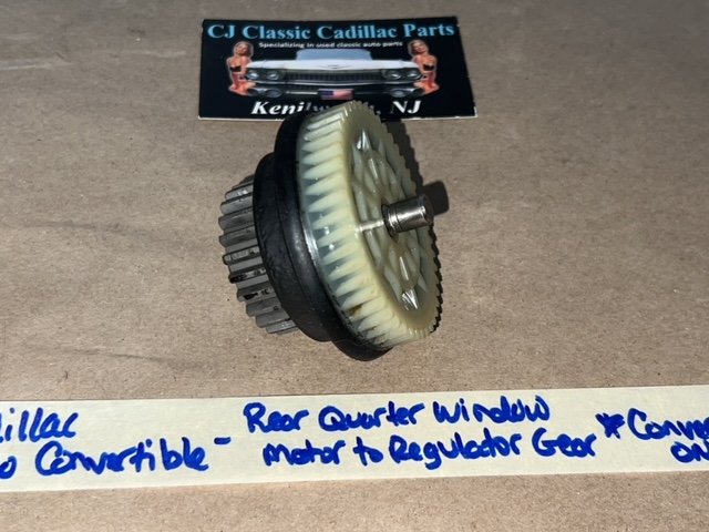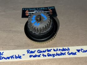 This OEM rear quarter window motor regulator gear is in excellent condition. All teeth have very minimal to no wear. Overall very clean. This is for CONVERTIBLES only for the rear quarter window motor to regulator, it is deeper than the regular gears. This was removed from a 1964 Cadillac Eldorado Convertible, but may fit convertible vehicles listed in compatibility chart; fitment based on quarter window regulator in the Cadillac Master Parts list & Hollander; please do your own research as we do not offer refunds if it does not fit your vehicle.